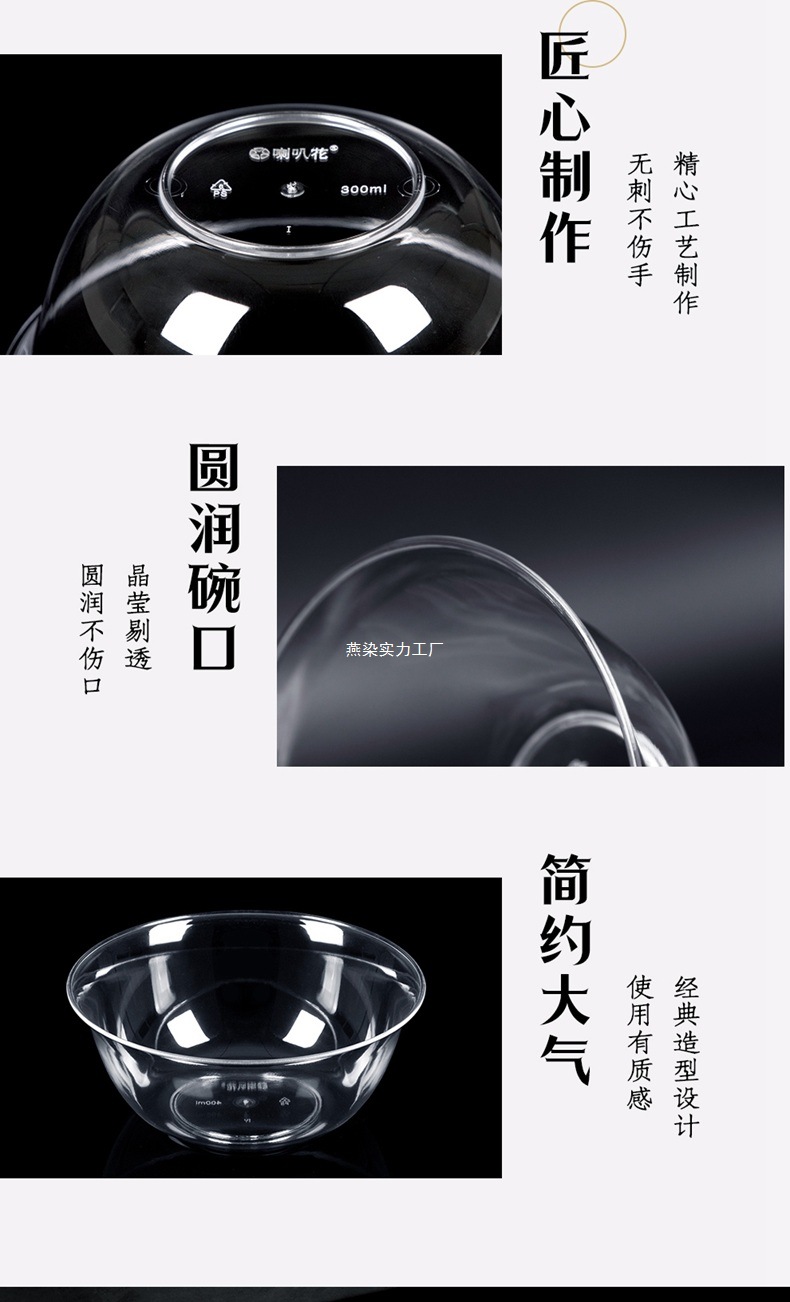 트럼펫 꽃 300ml 일회용 플라스틱 크리스탈 그릇 투명 디저트 수프 그릇 핫팟 식기 세트 그릇 젓가락이 다이어트를 즐깁니다.스토어 가기