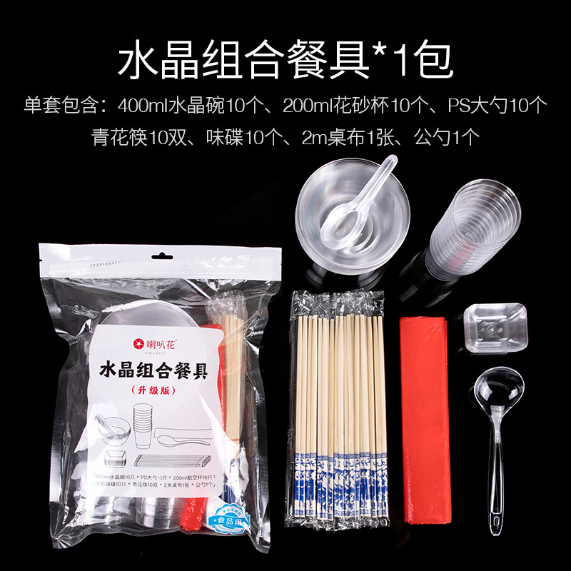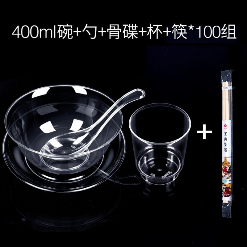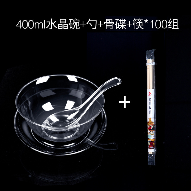 • 400ml 크리스탈 그릇 + 젓가락 + PS 수프 스푼 + 뼈 접시 + Miaoyu 컵 각 100개