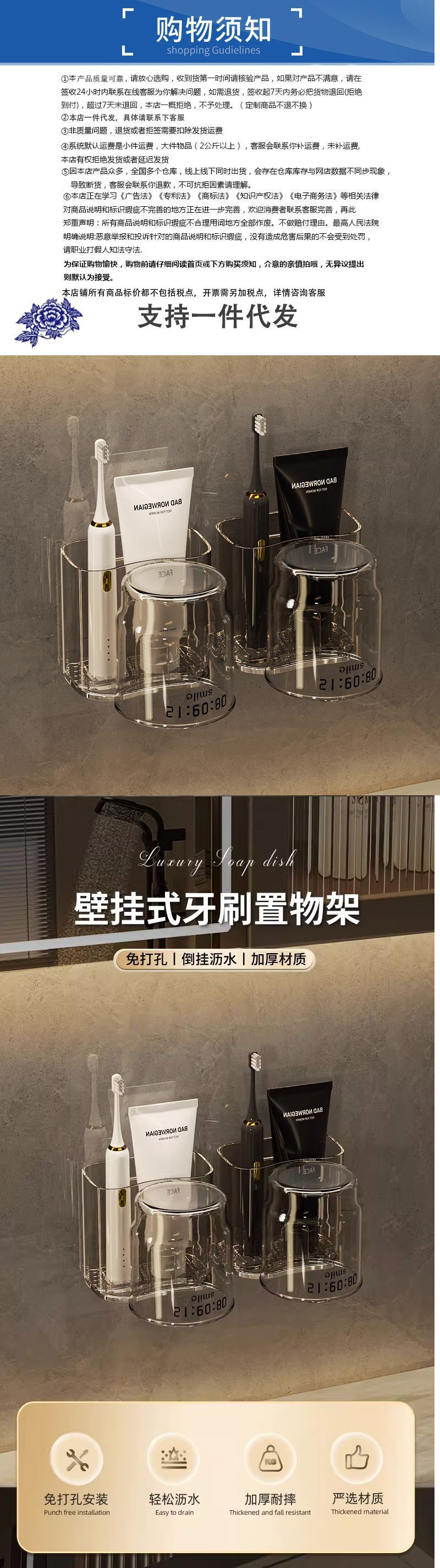 가벼운 고급 칫솔 랙 천공되지 않은 가정용 칫솔 입 컵 칫솔 컵 커플 벽 교수형 기숙사 치약 랙스토어 가기