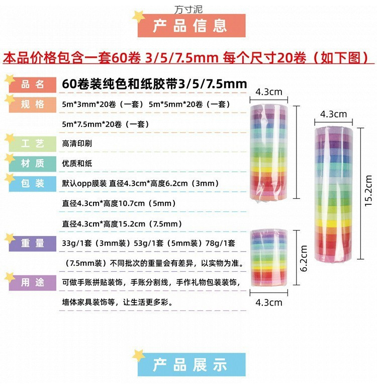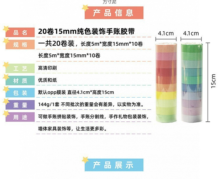 컬러 20 롤 및 종이 테이프 세트 캔디 컬러 Morandi diy 기본 간단한 손 계정 프레임 테이프 공장스토어 가기