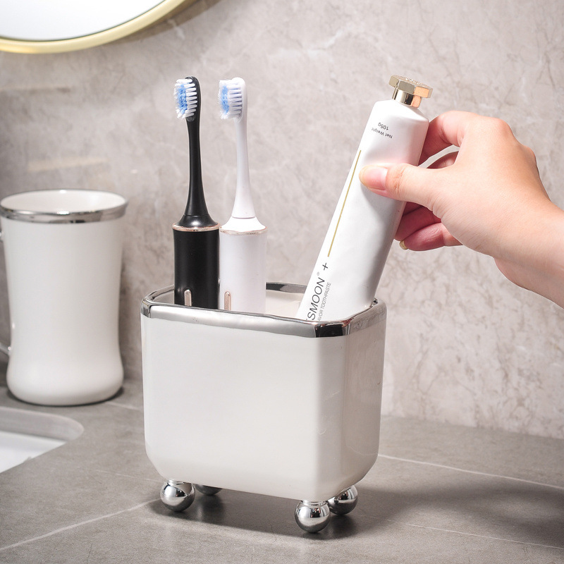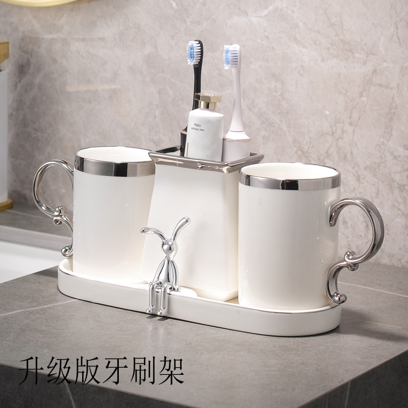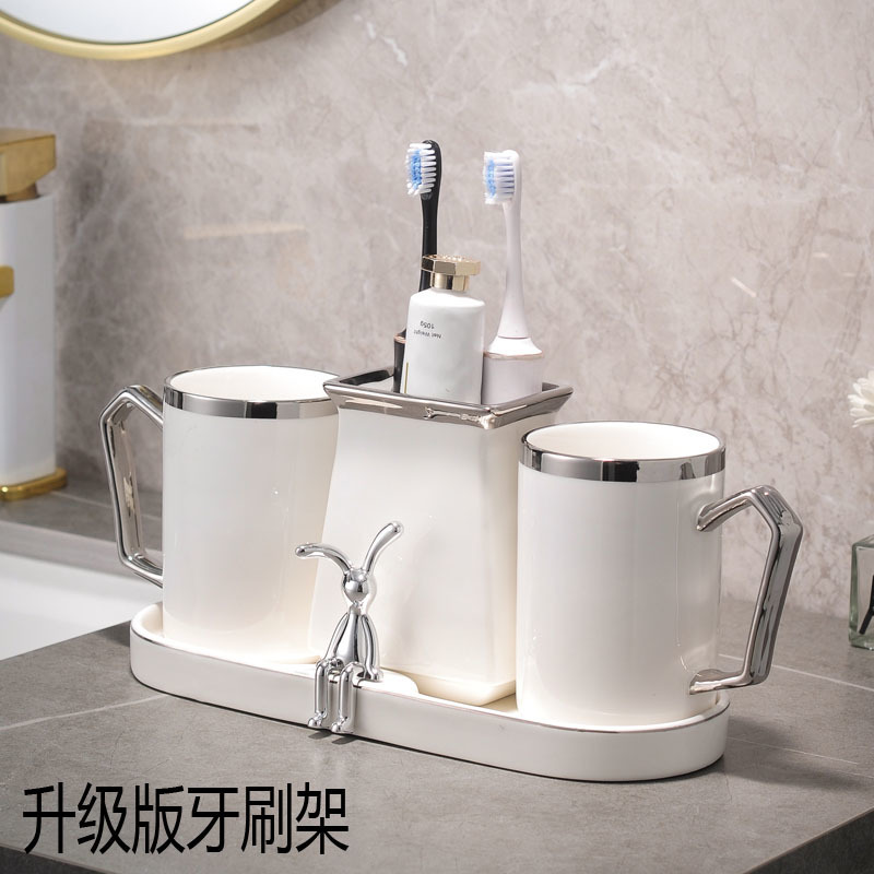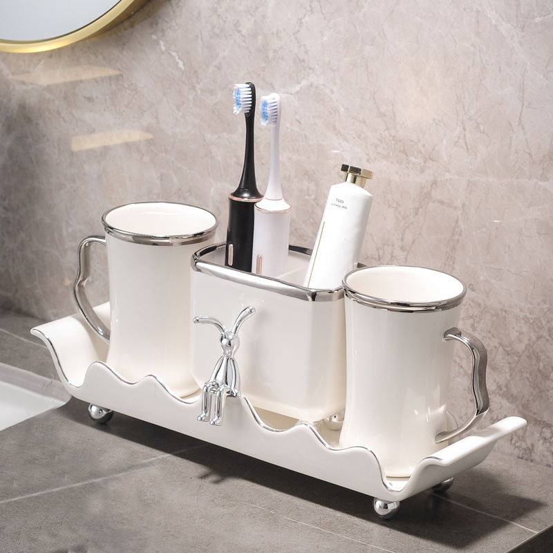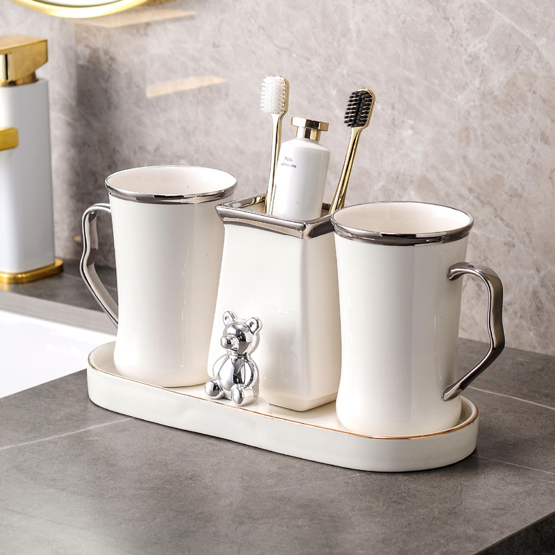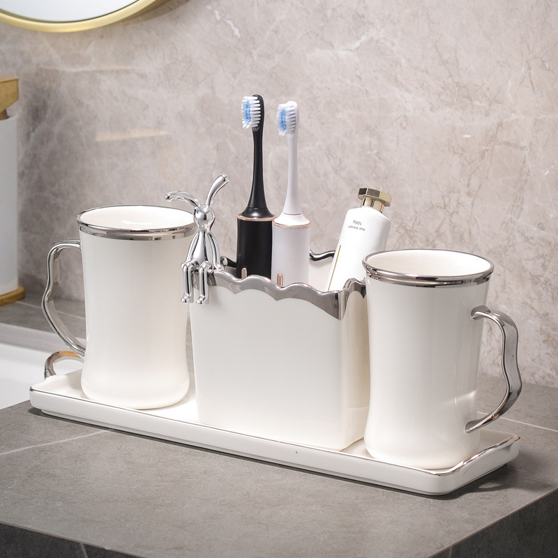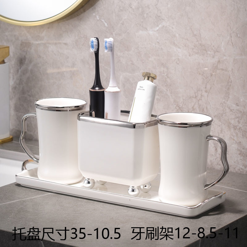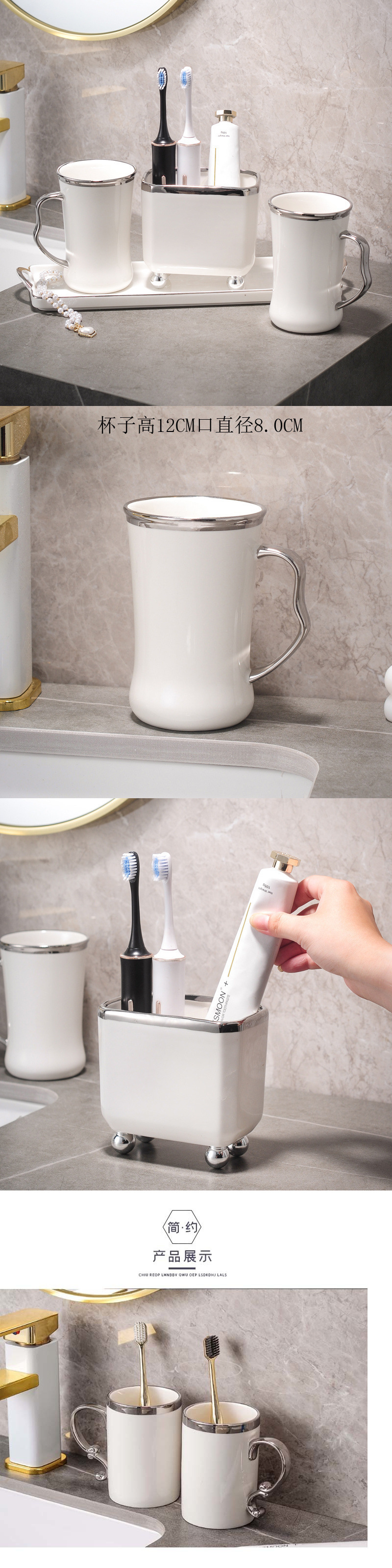 실버 높은 발 트레이 세라믹 Mouthwash 컵 세트 욕실 칫솔 빗 랙 칫솔 컵 프리미엄 감각