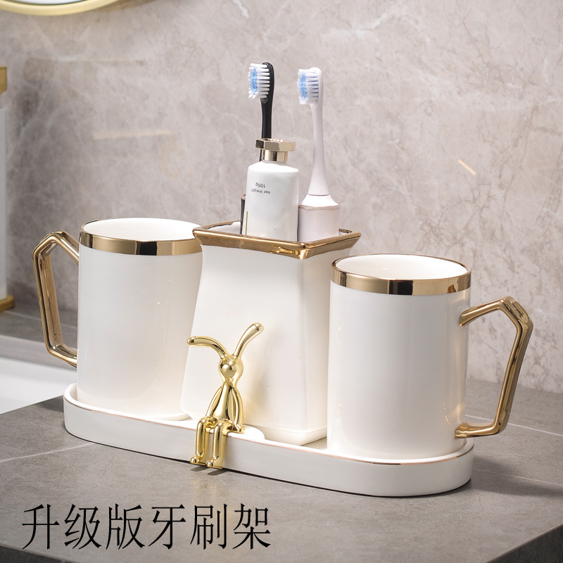 실버 높은 발 트레이 세라믹 Mouthwash 컵 세트 욕실 칫솔 빗 랙 칫솔 컵 프리미엄 감각스토어 가기