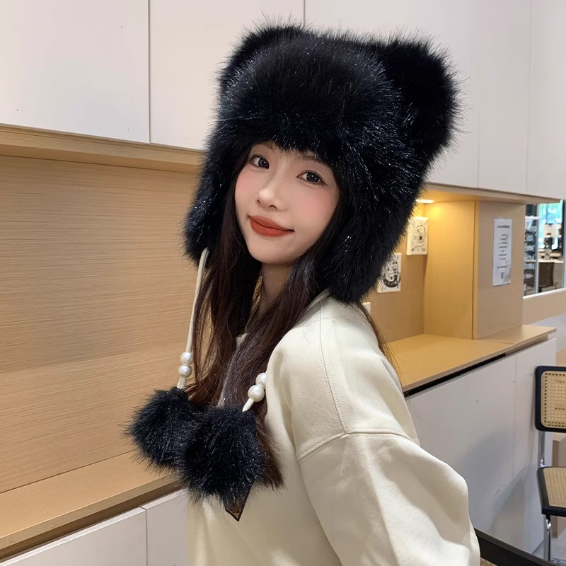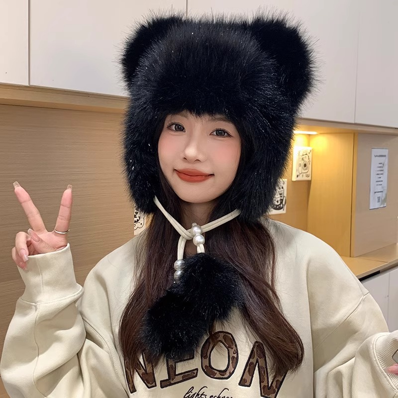 • 블랙 [두꺼운 따뜻한 귀 보호 모자]