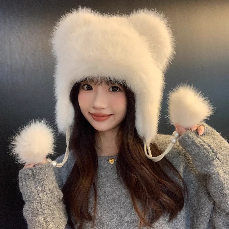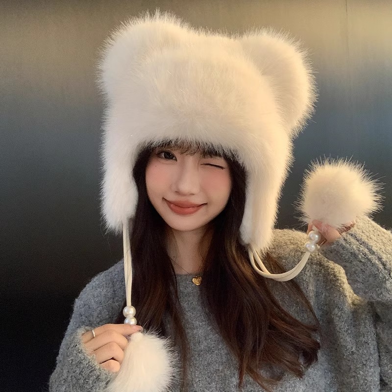 귀여운 곰 모자 아이들의 겨울 모피 두꺼운 얼굴 작은 방풍 귀 동북 한랭 방지 따뜻한 레이 펑 모자