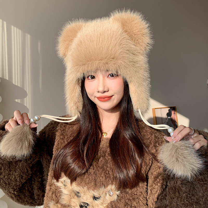 • 베이지 [두꺼운 따뜻한 귀 보호 모자]
