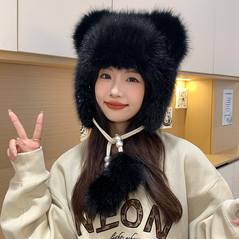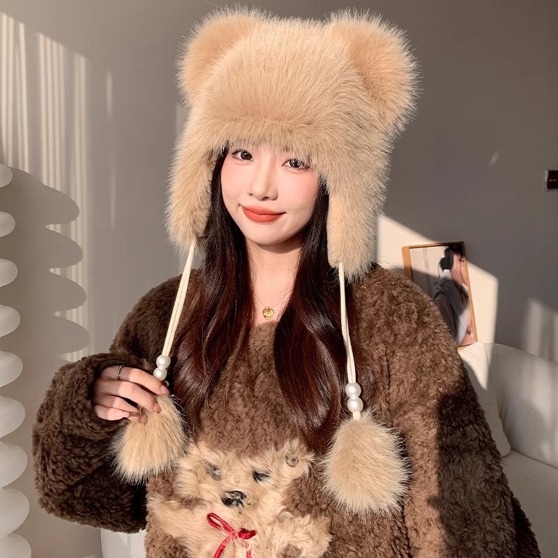 귀여운 곰 모자 아이들의 겨울 모피 두꺼운 얼굴 작은 방풍 귀 동북 한랭 방지 따뜻한 레이 펑 모자스토어 가기