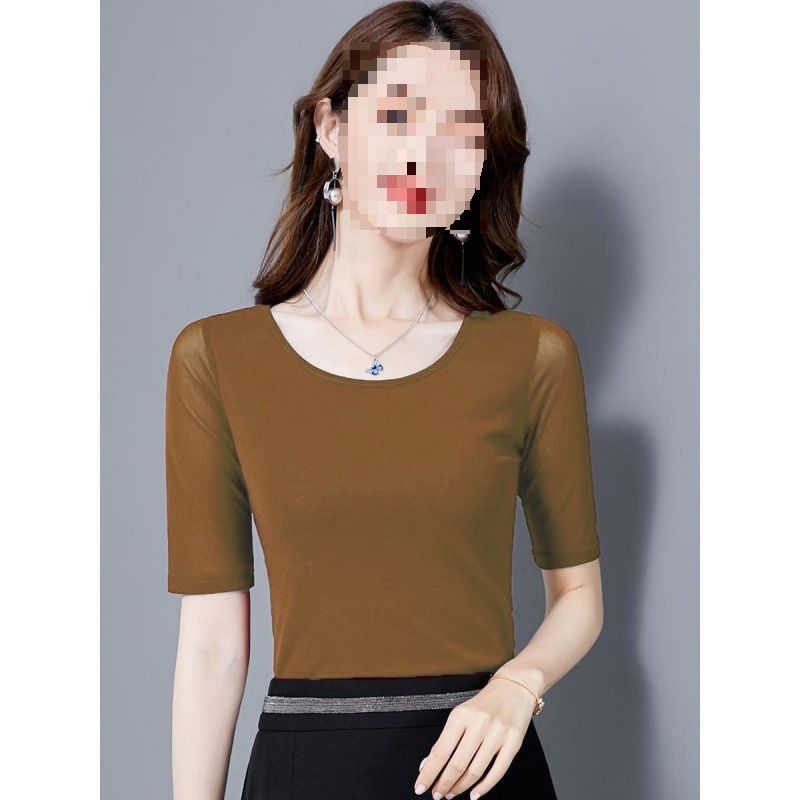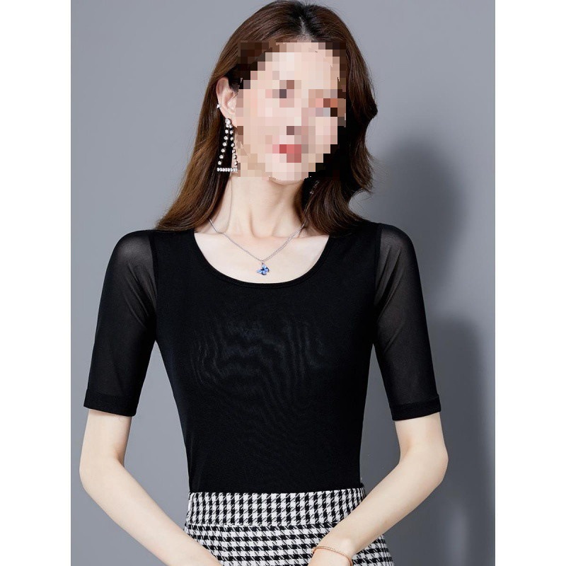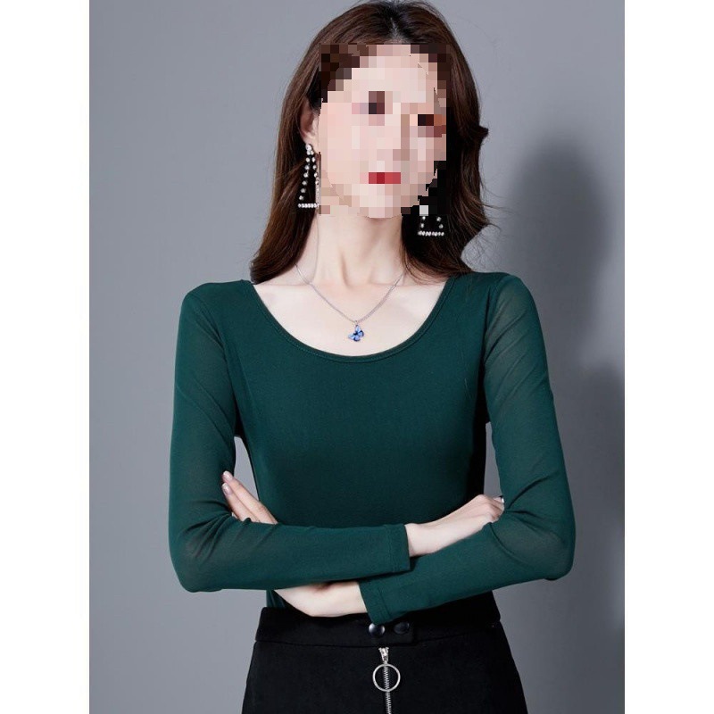 봄과 가을 뉴 메쉬베이스 셔츠 여성용 한국식 올 매치 작은 셔츠 라운드 넥 셔츠 얇은 슬림 핏 슬리밍 탑