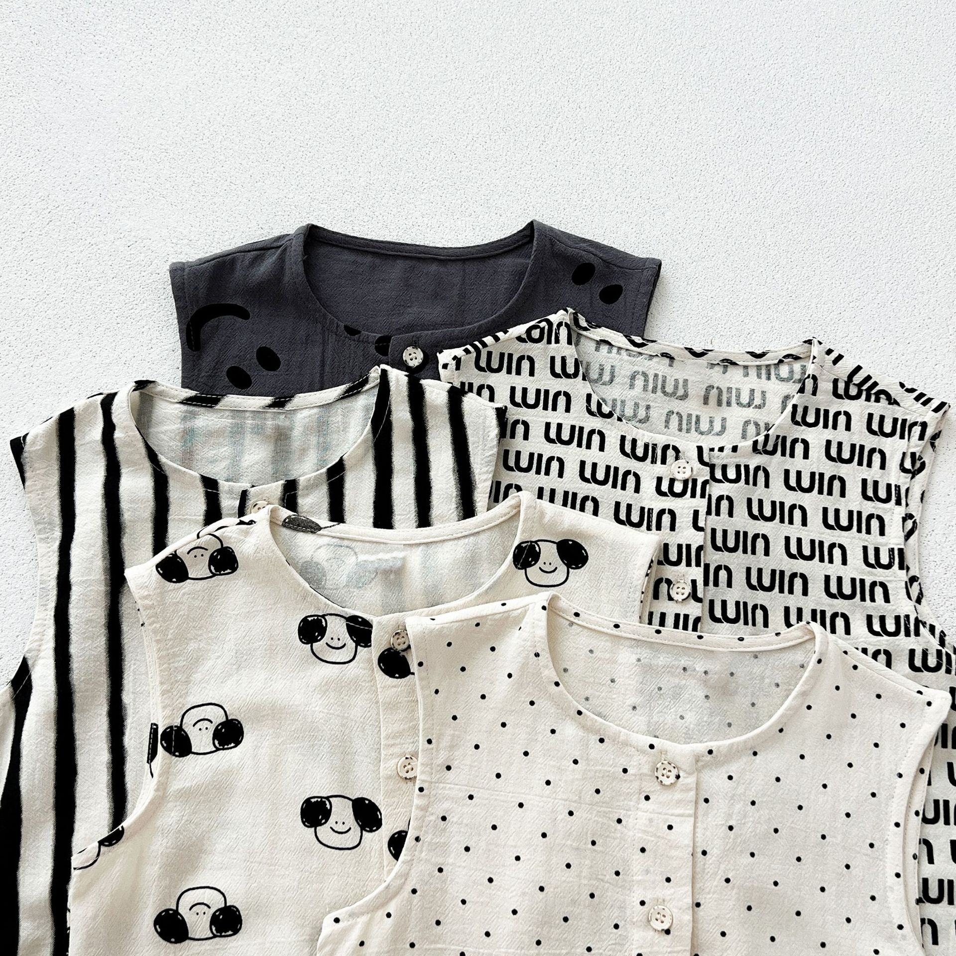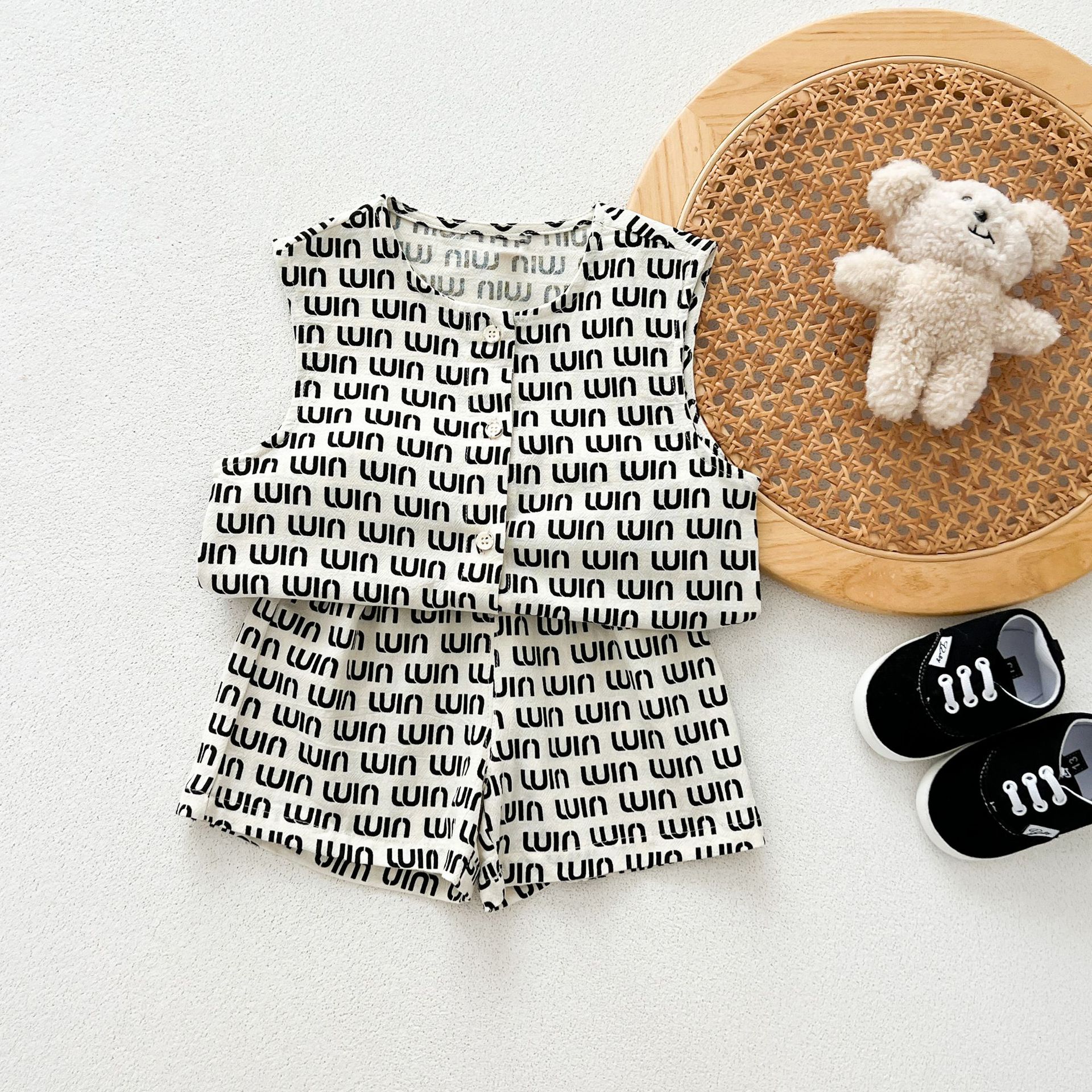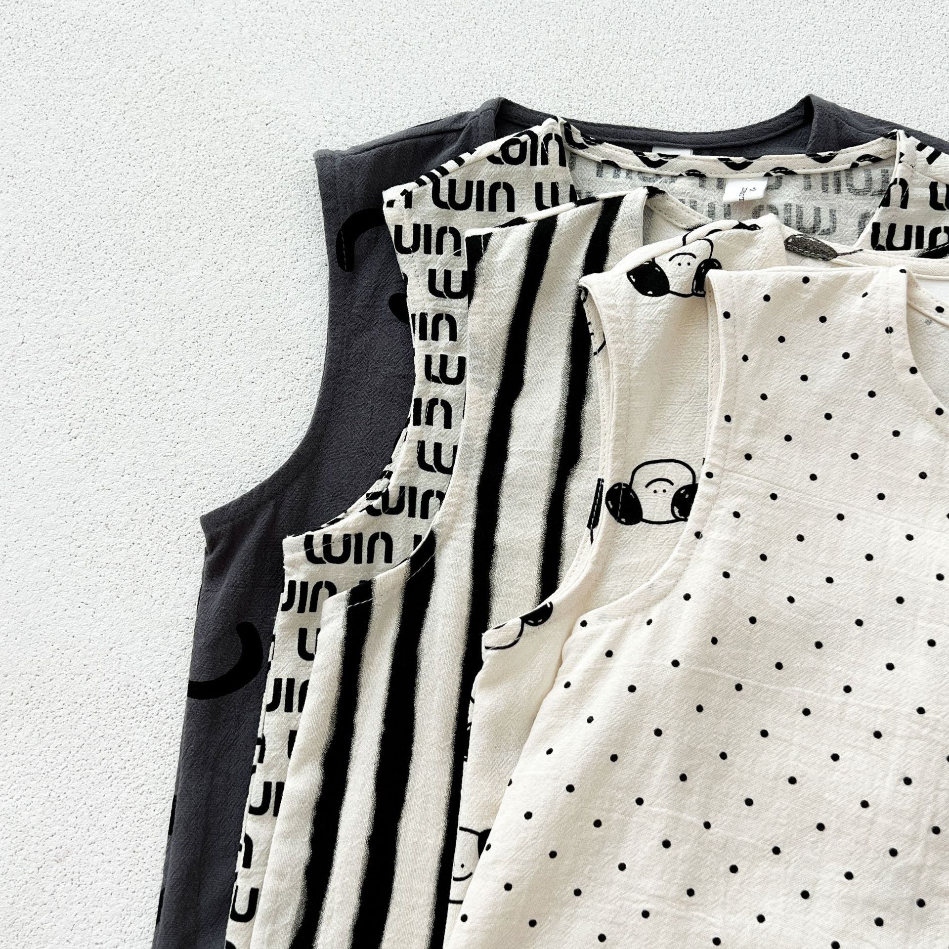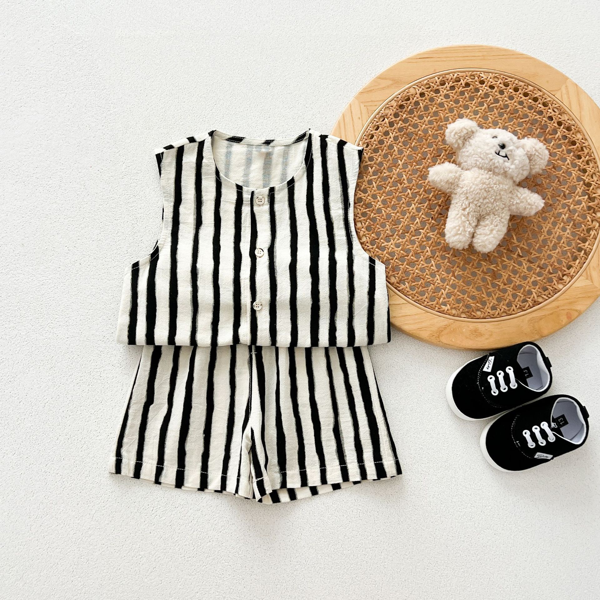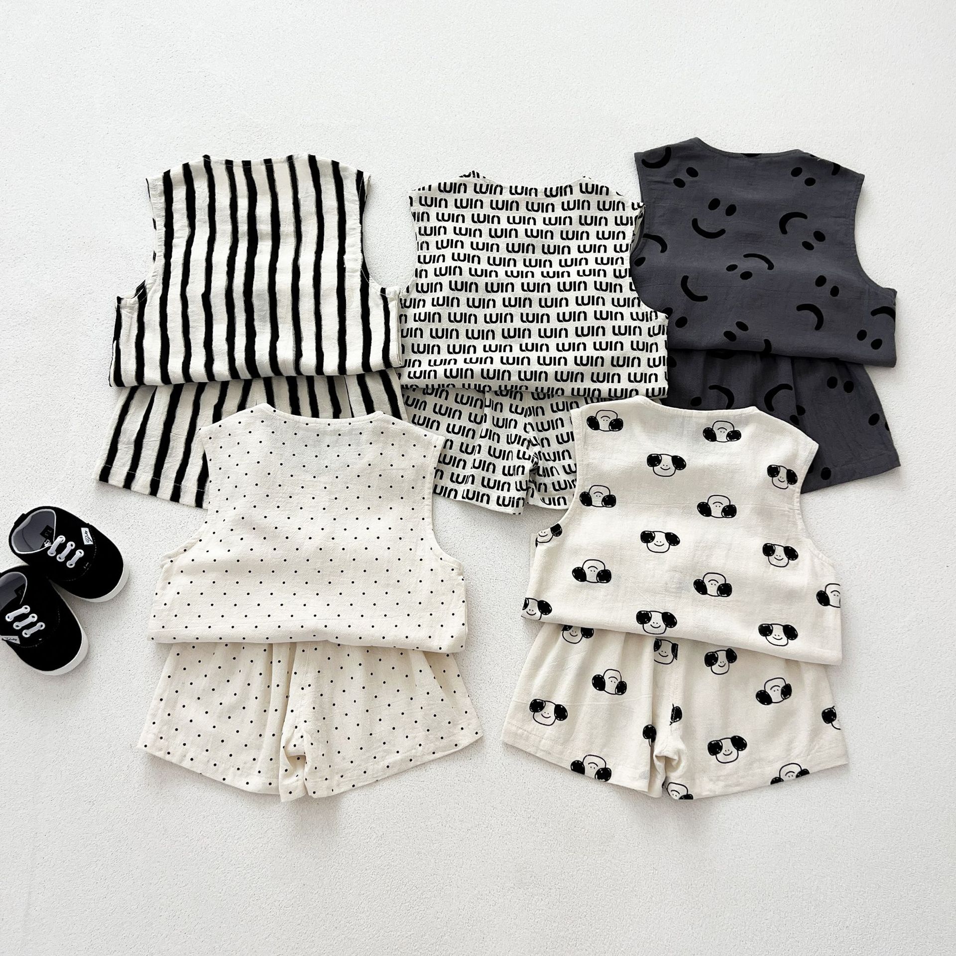 남녀 세트 여름 새 면 투피스 세트 중소 어린이 및 아기의 민소매 탑 바지 느슨하고 편안한스토어 가기