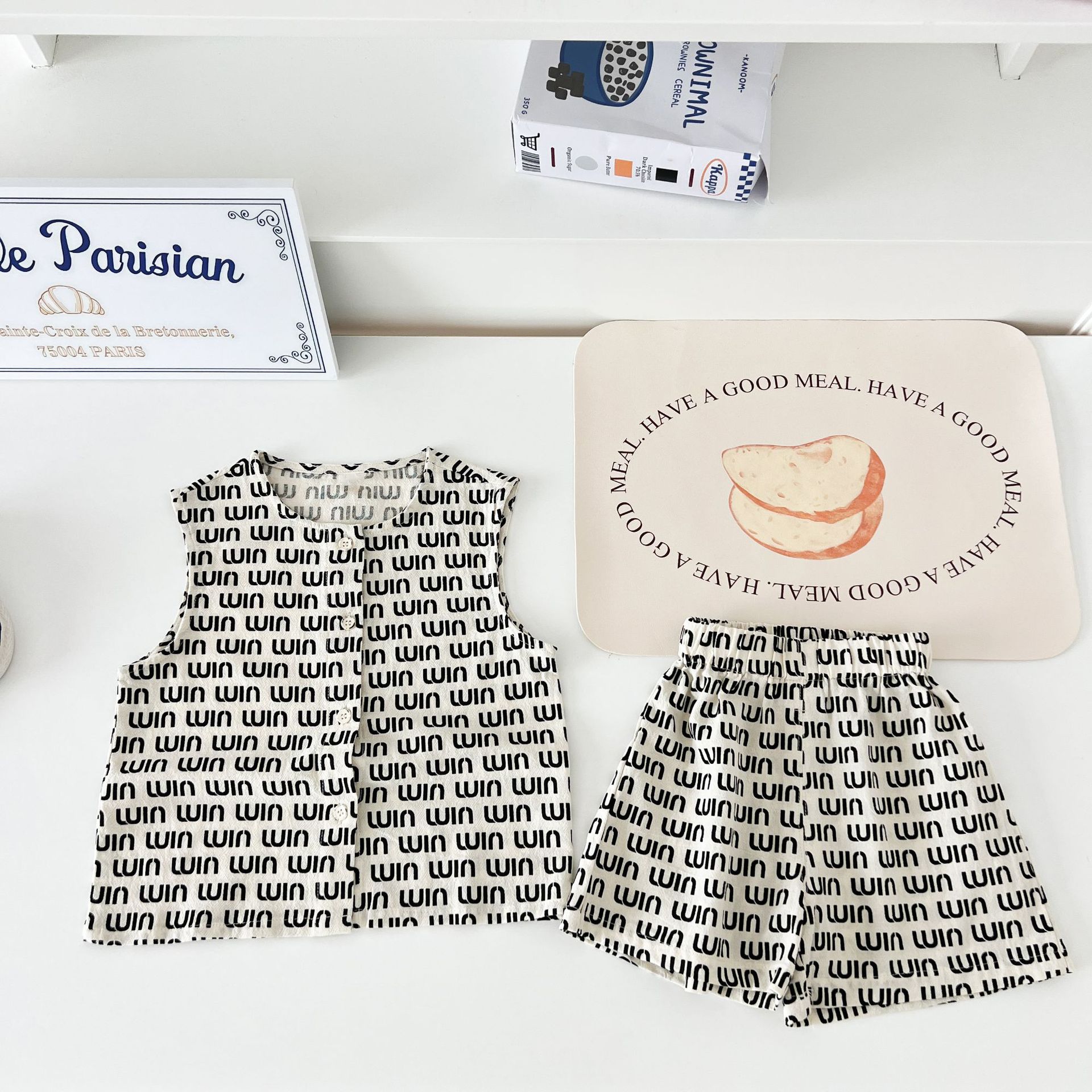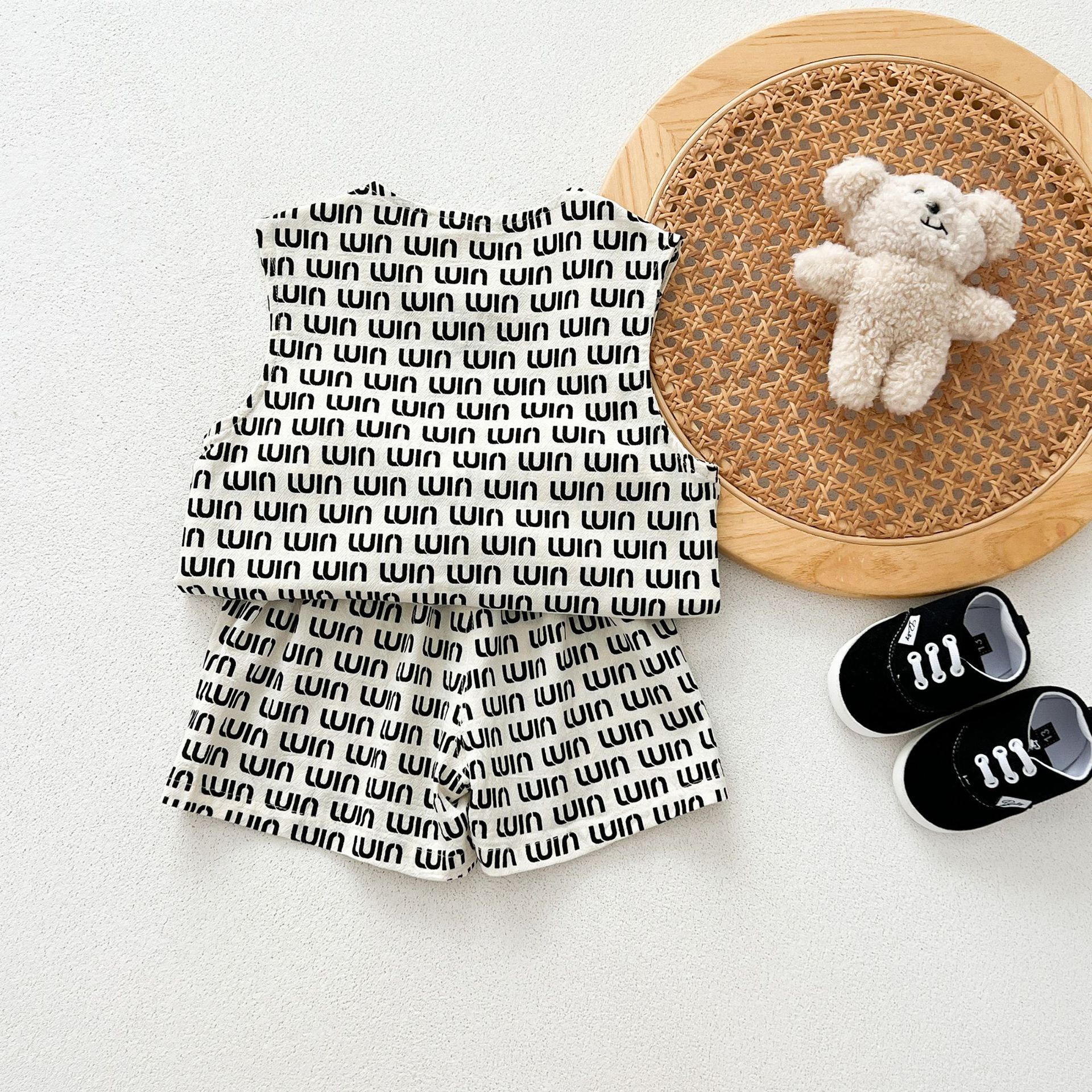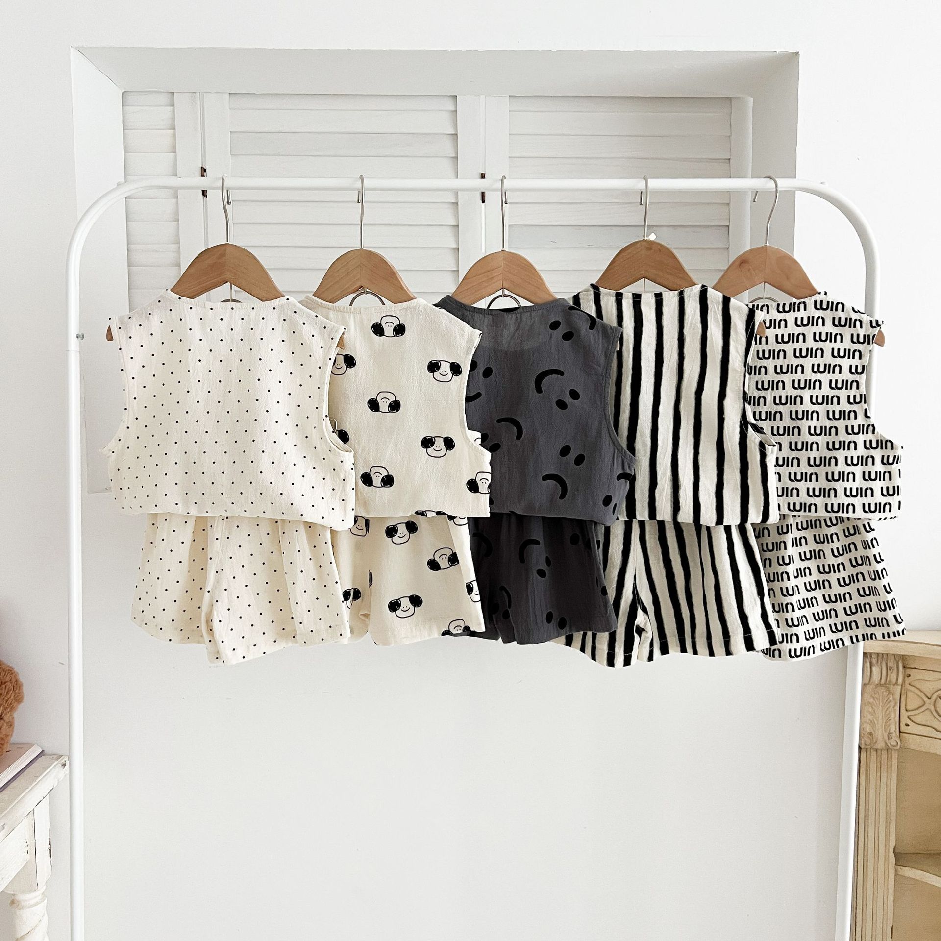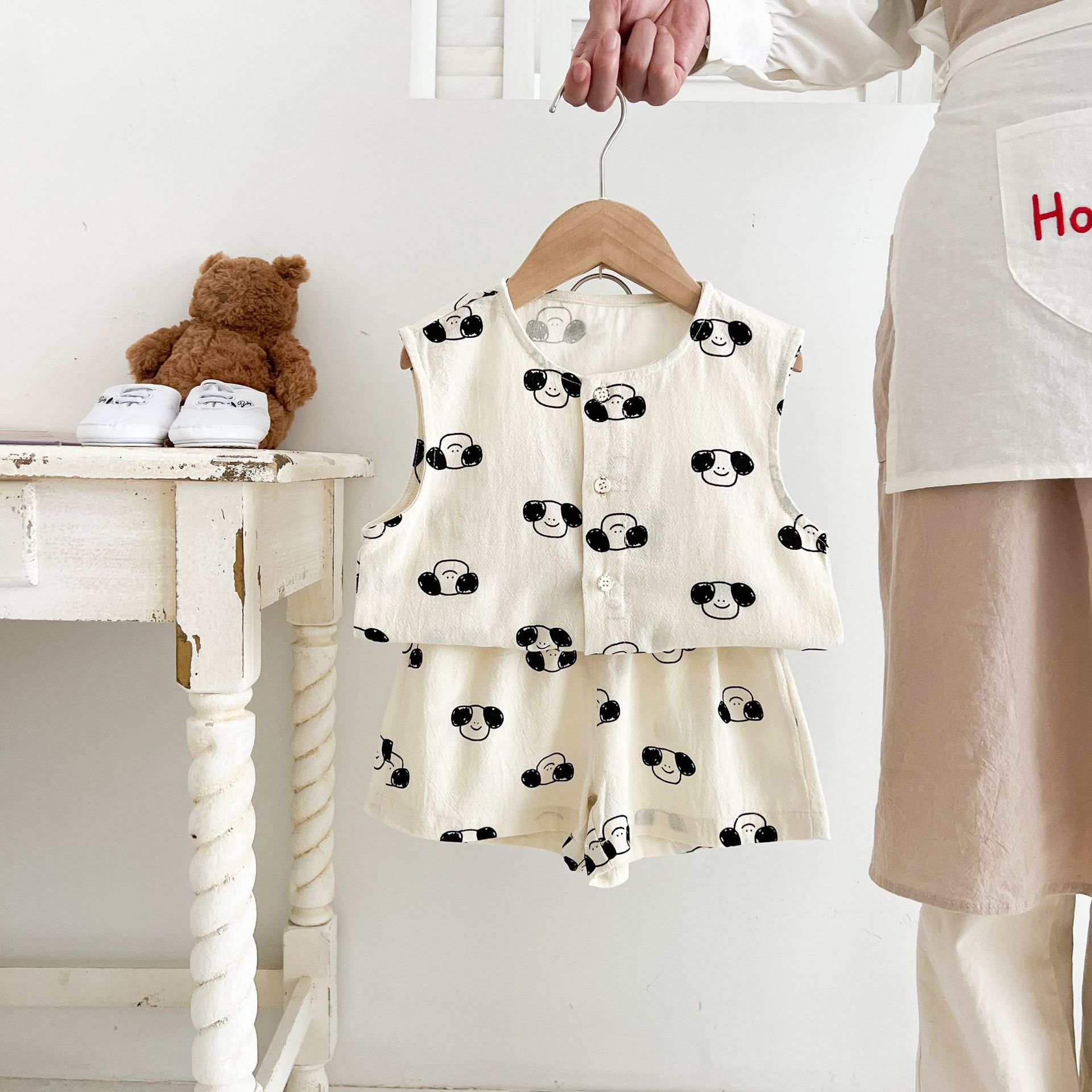 남녀 세트 여름 새 면 투피스 세트 중소 어린이 및 아기의 민소매 탑 바지 느슨하고 편안한스토어 가기