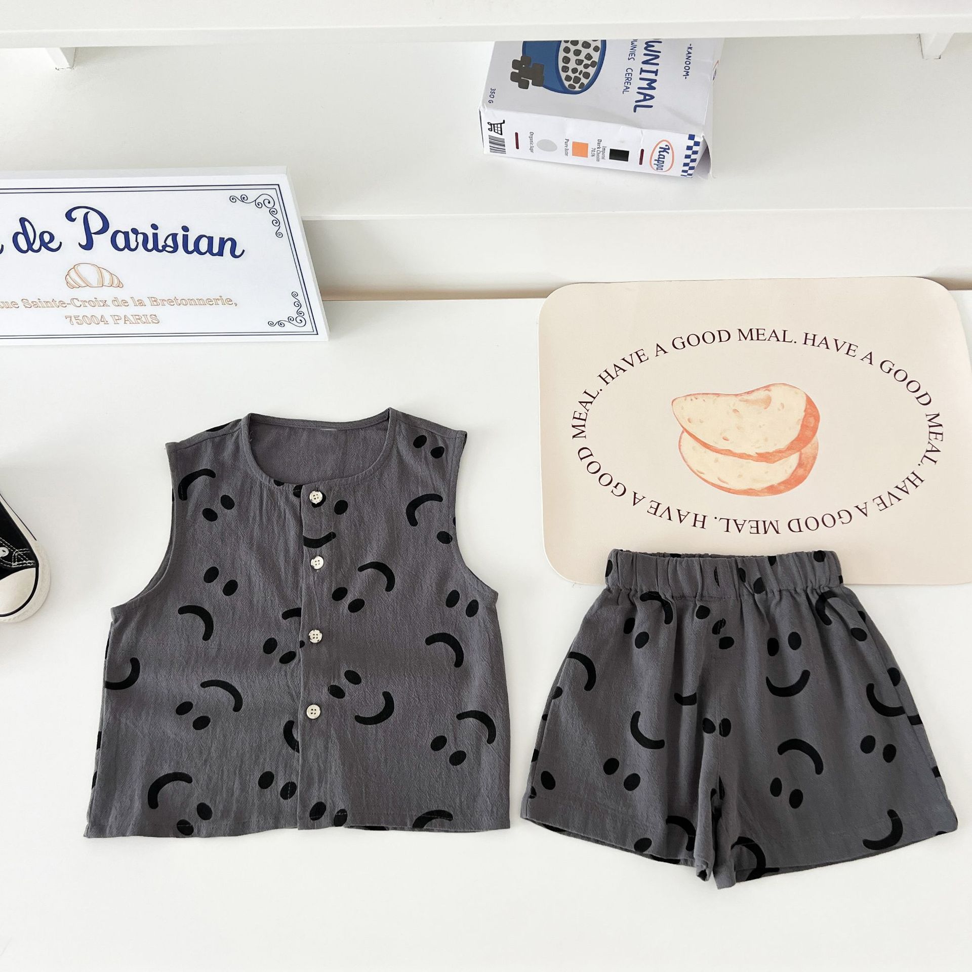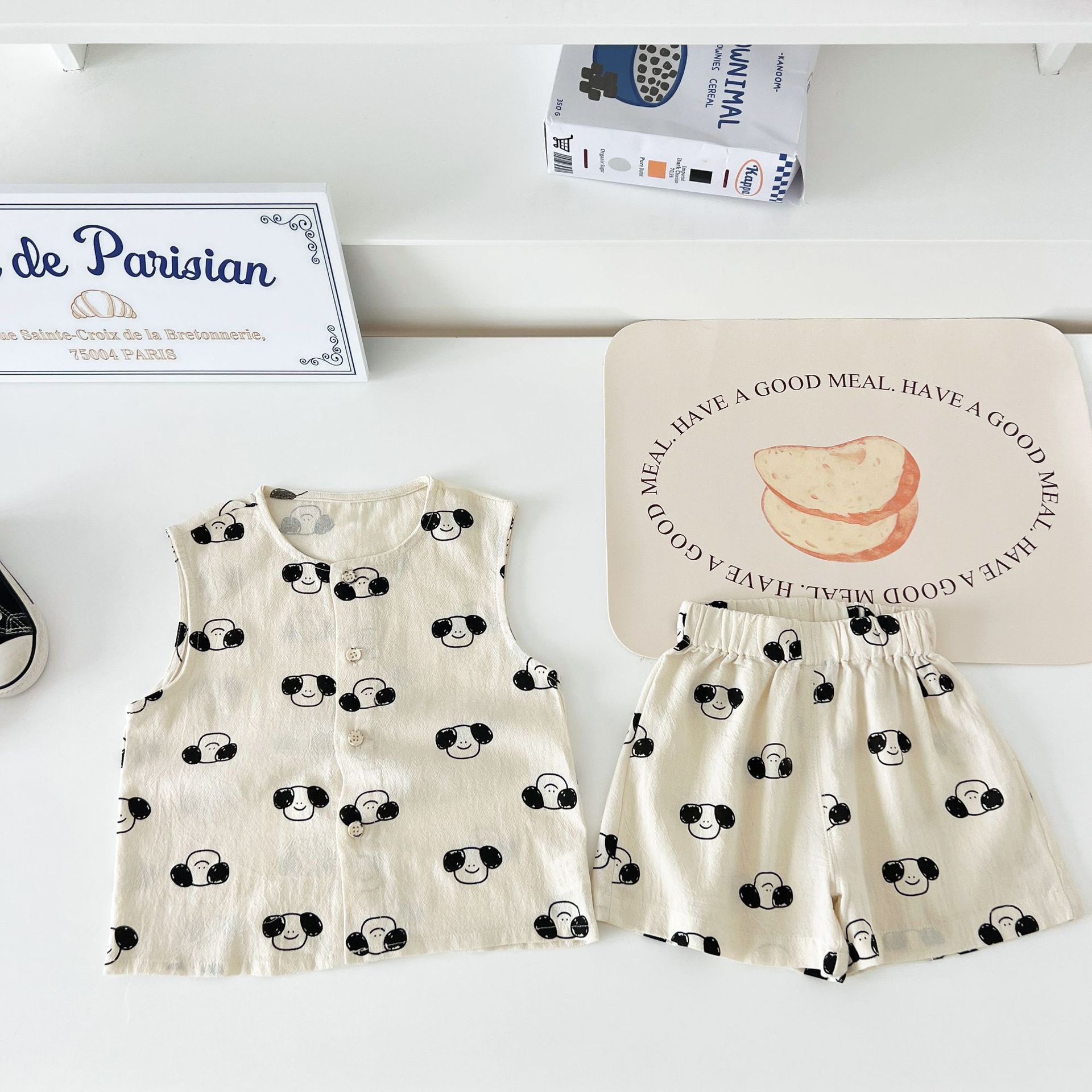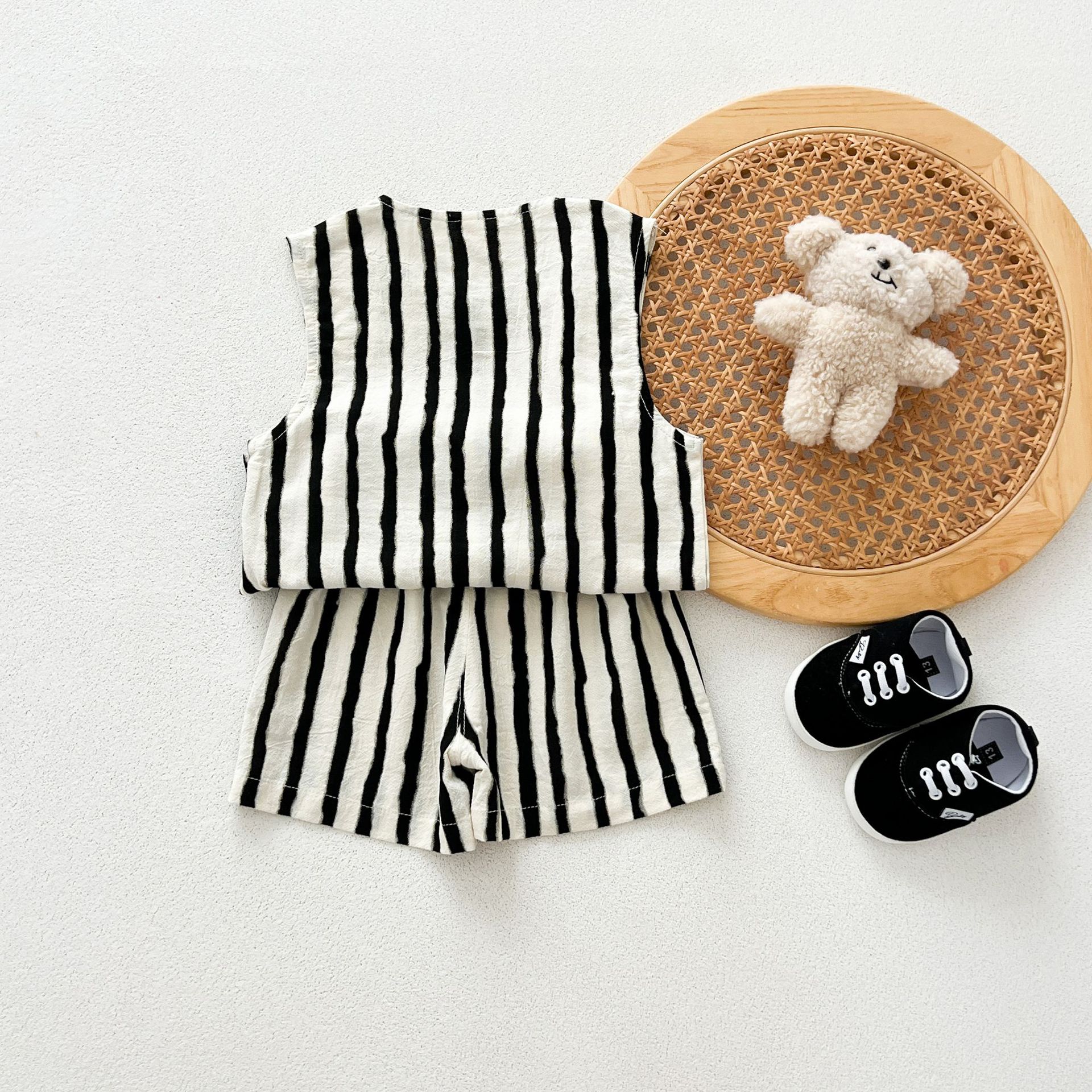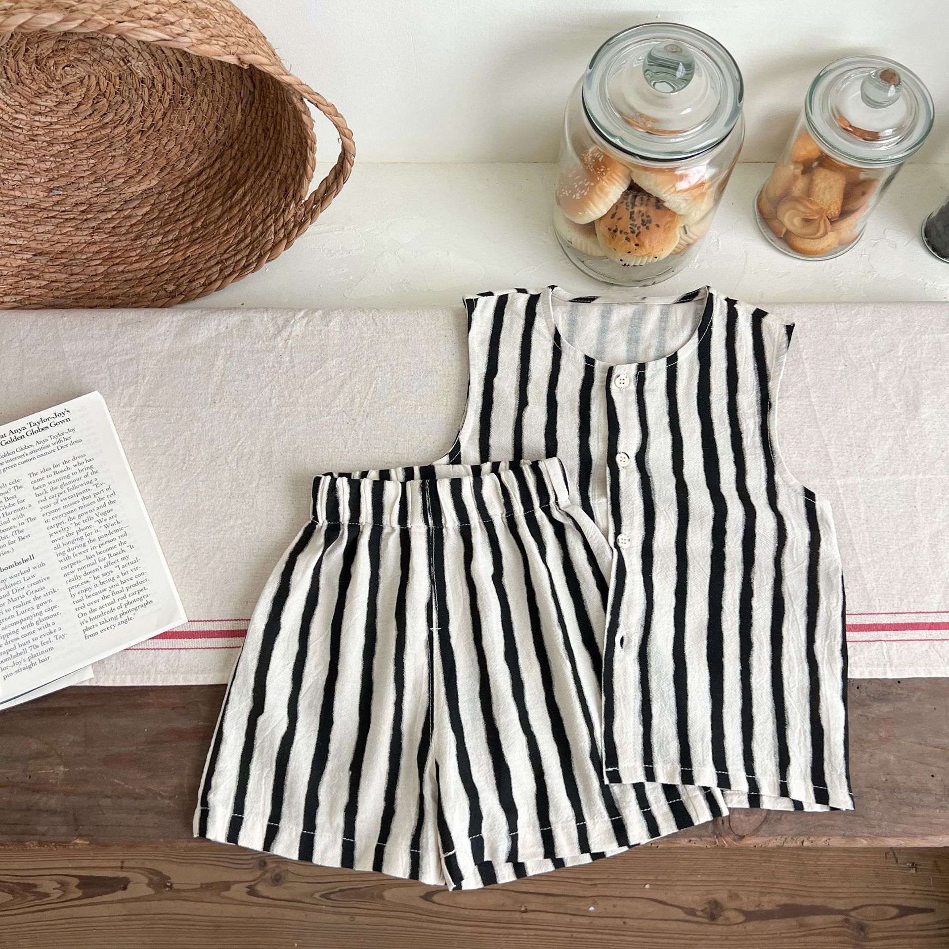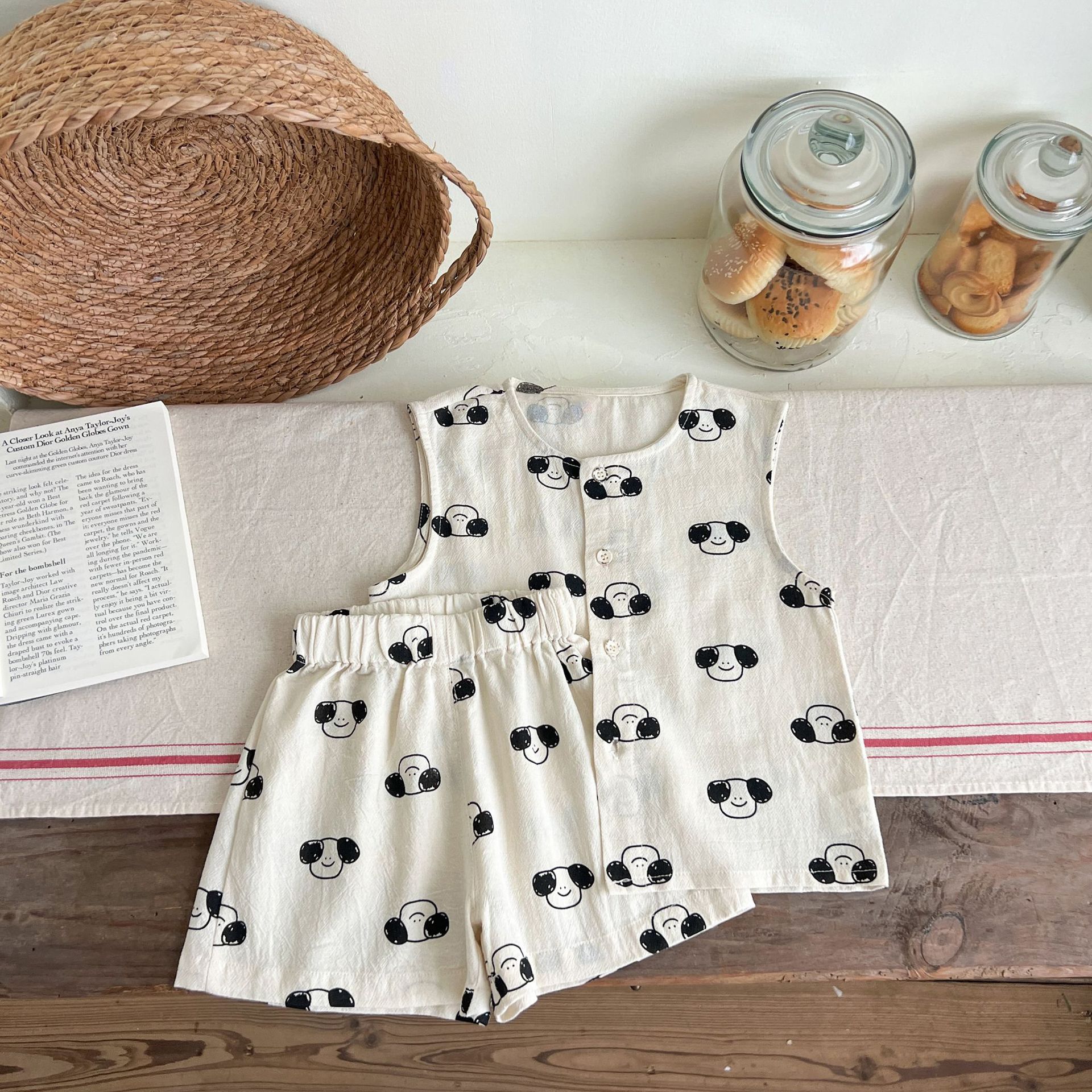 남녀 세트 여름 새 면 투피스 세트 중소 어린이 및 아기의 민소매 탑 바지 느슨하고 편안한스토어 가기
