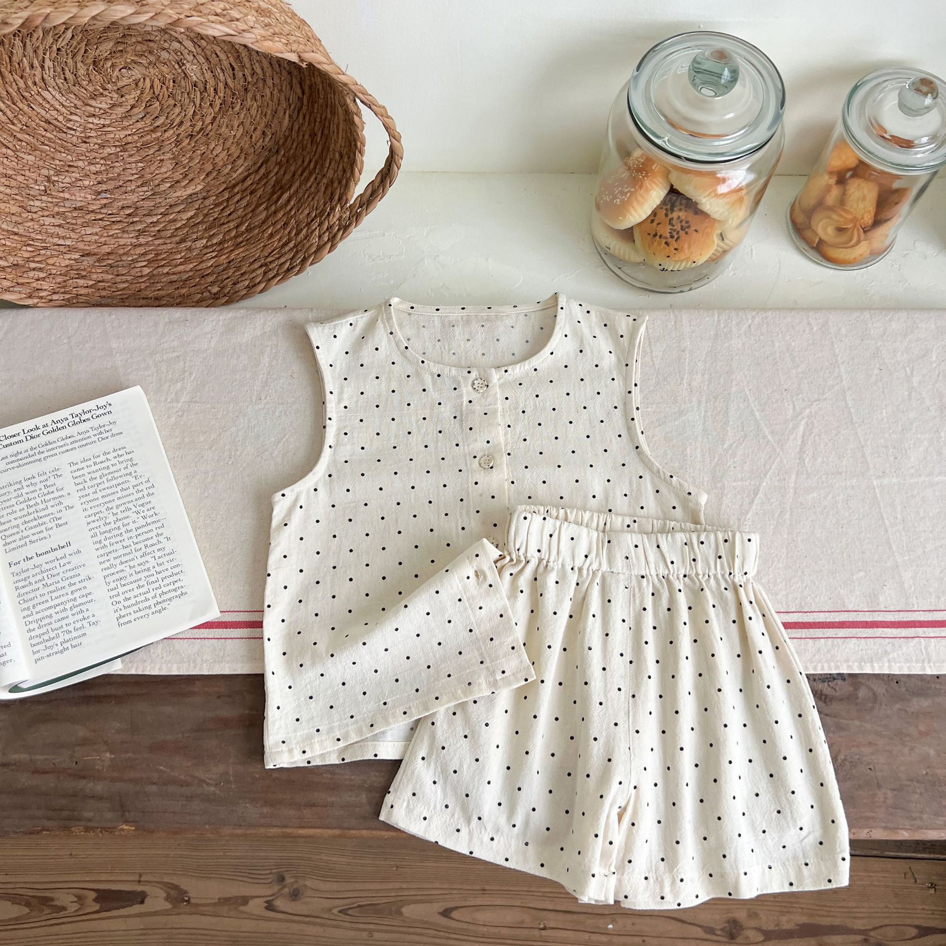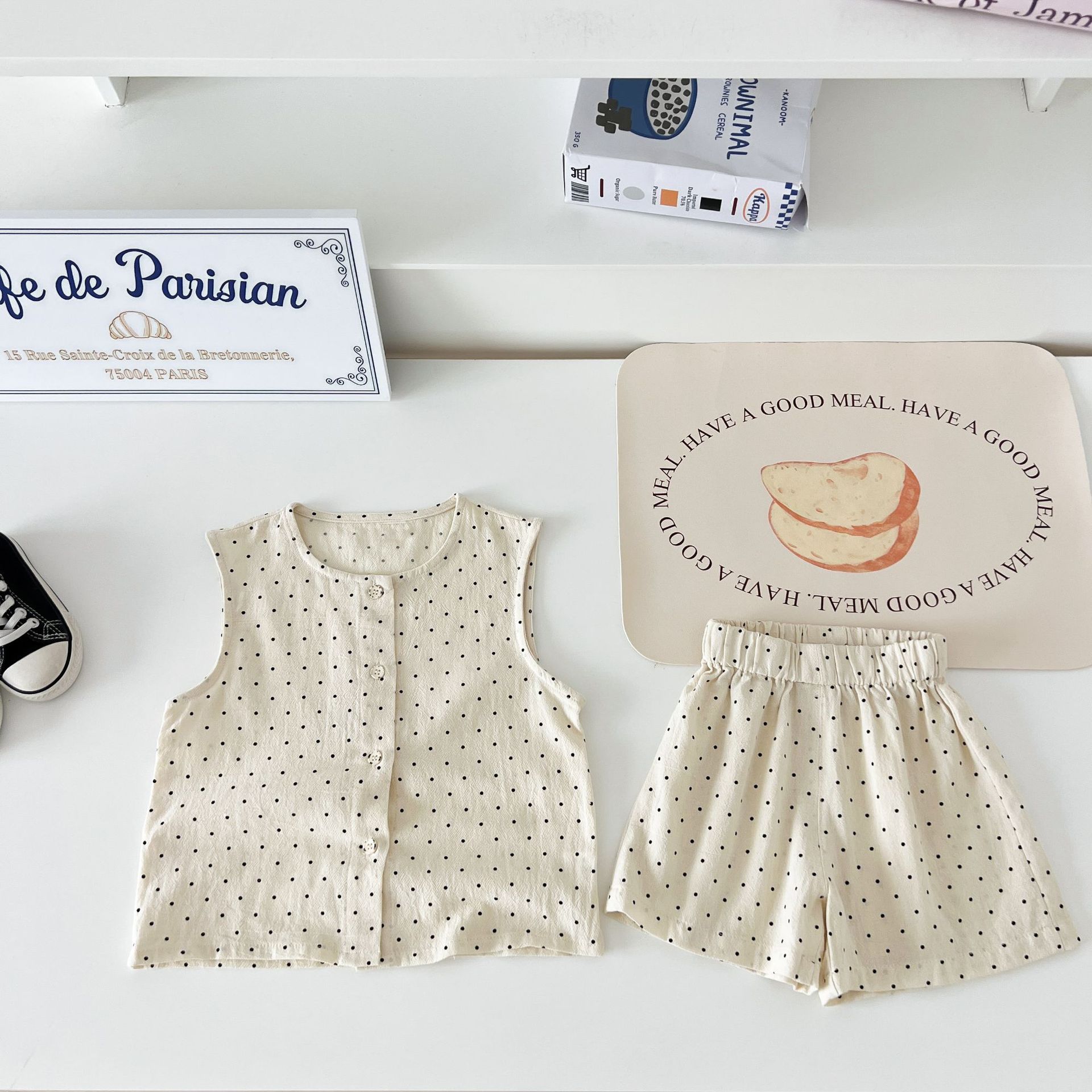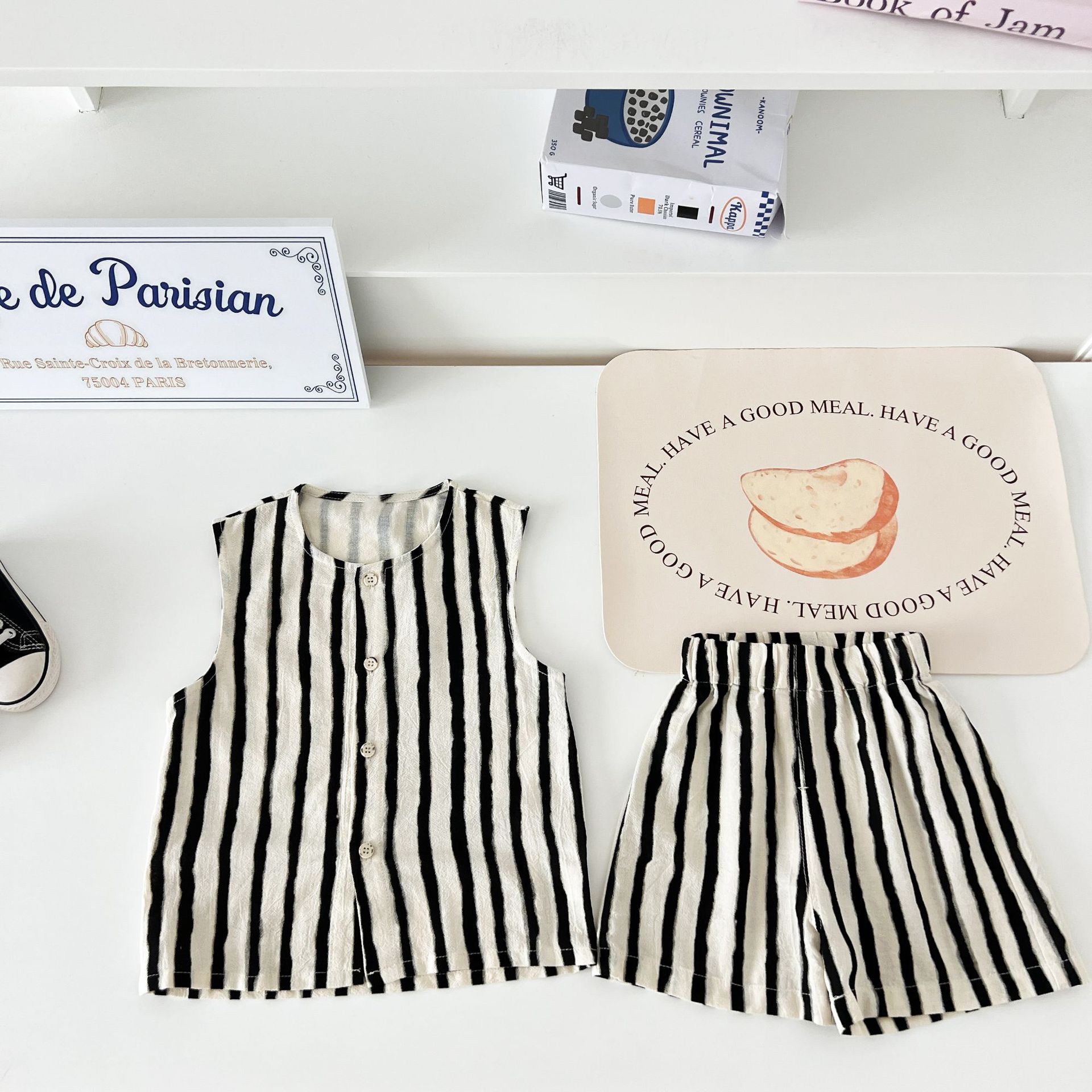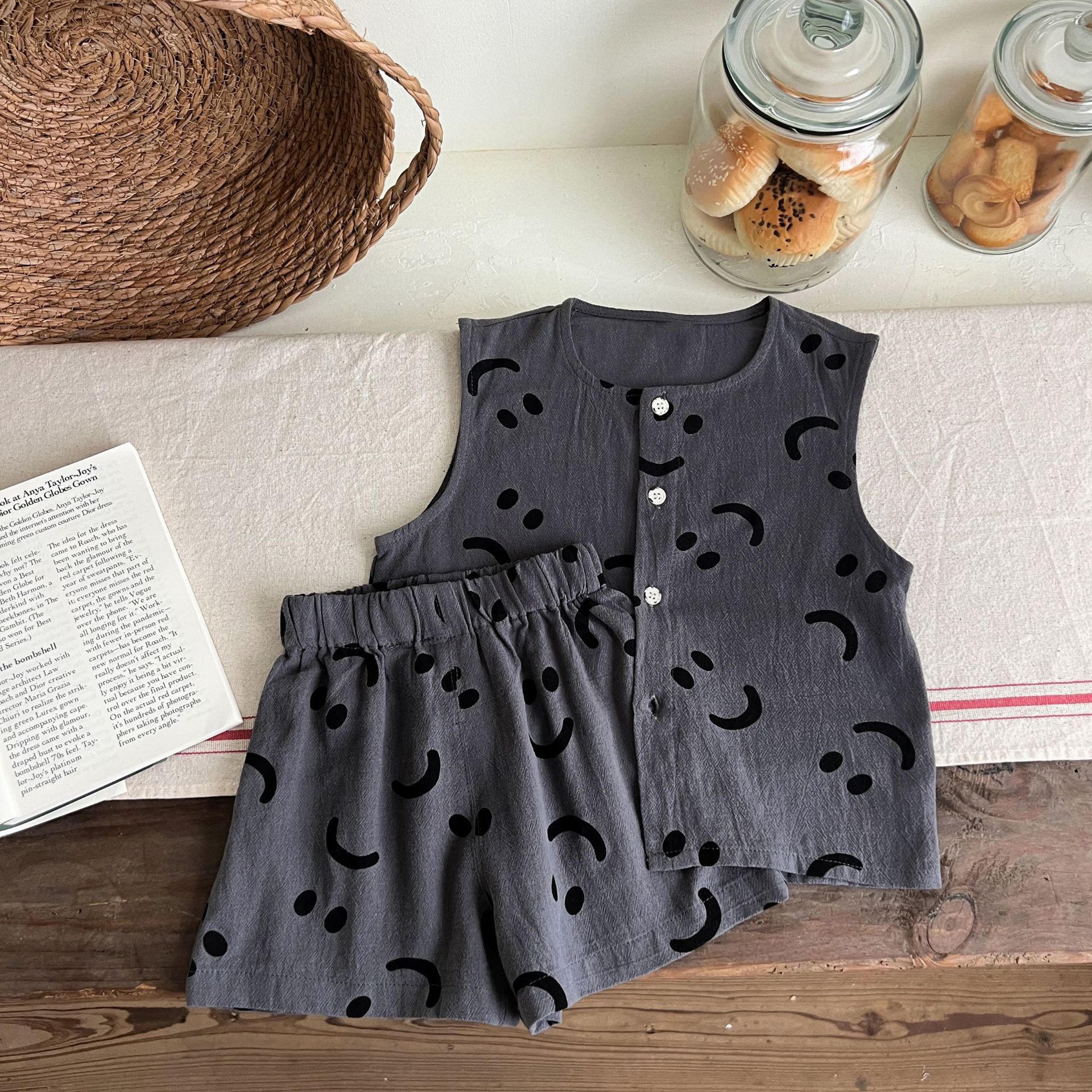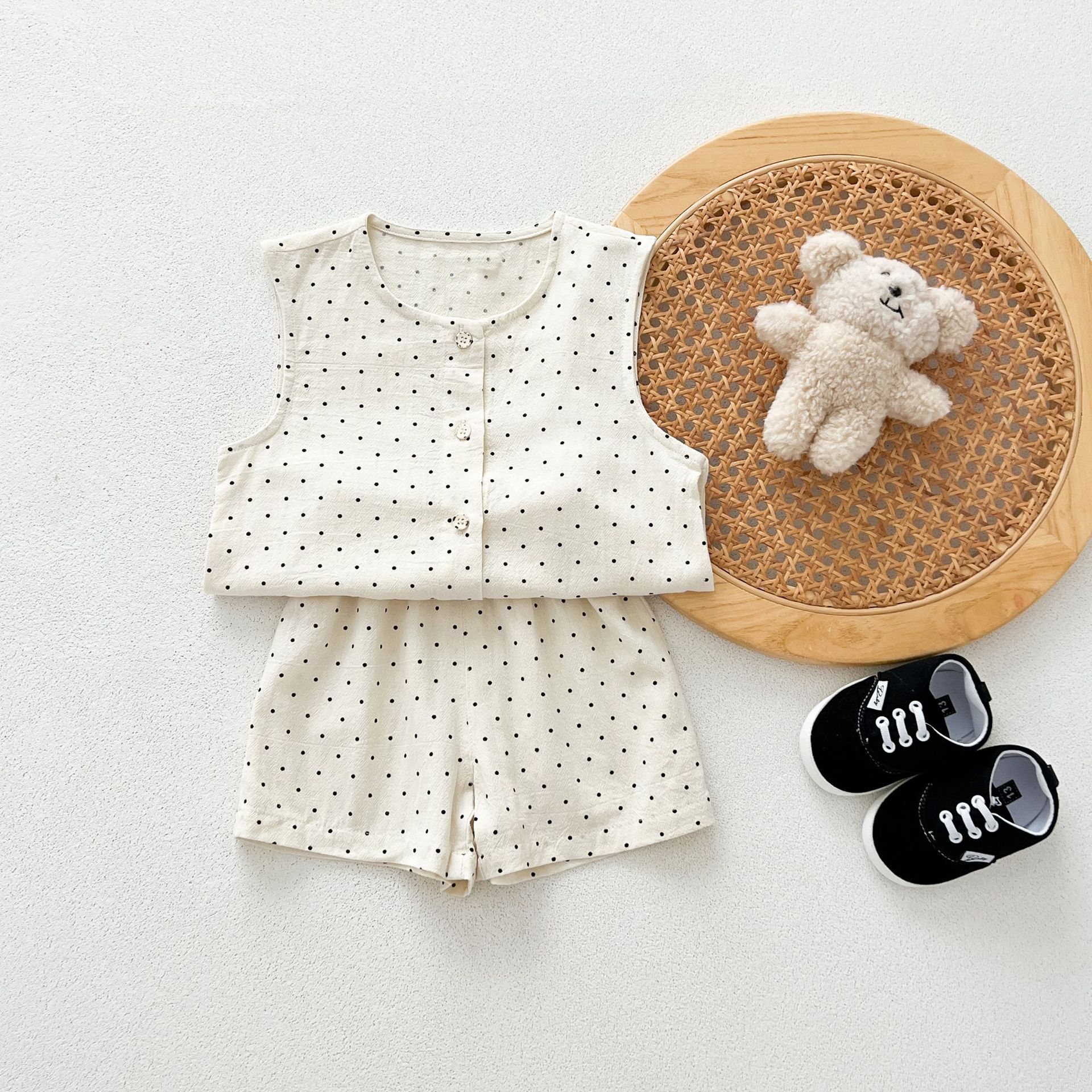 남녀 세트 여름 새 면 투피스 세트 중소 어린이 및 아기의 민소매 탑 바지 느슨하고 편안한스토어 가기