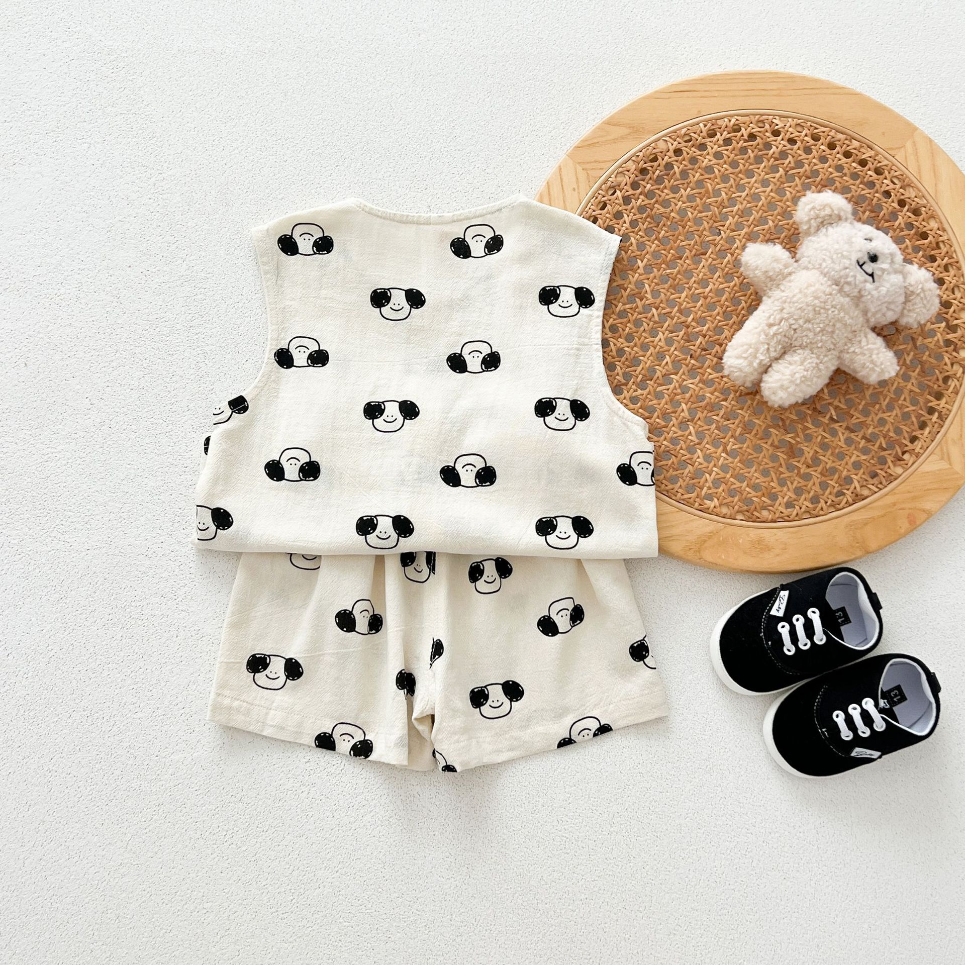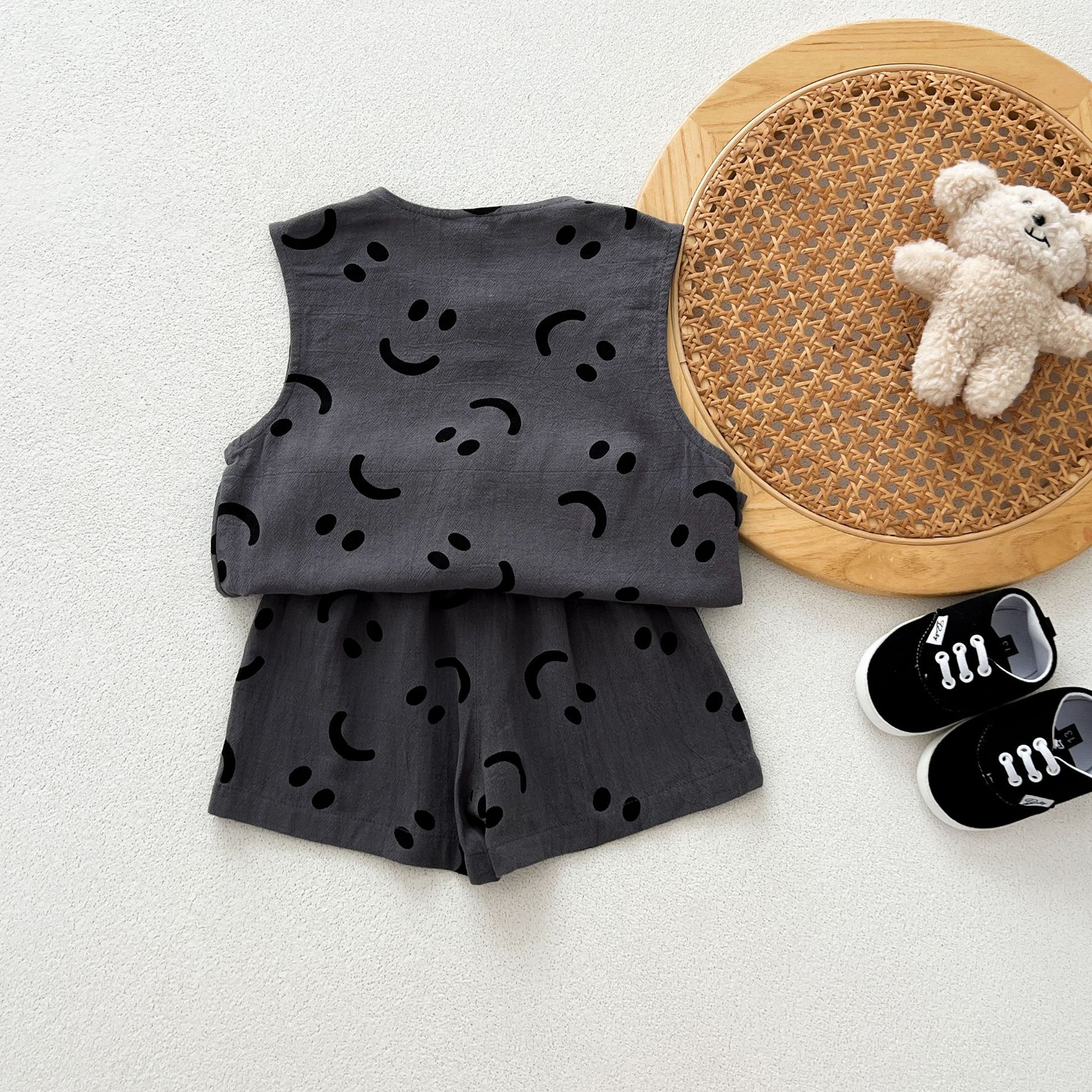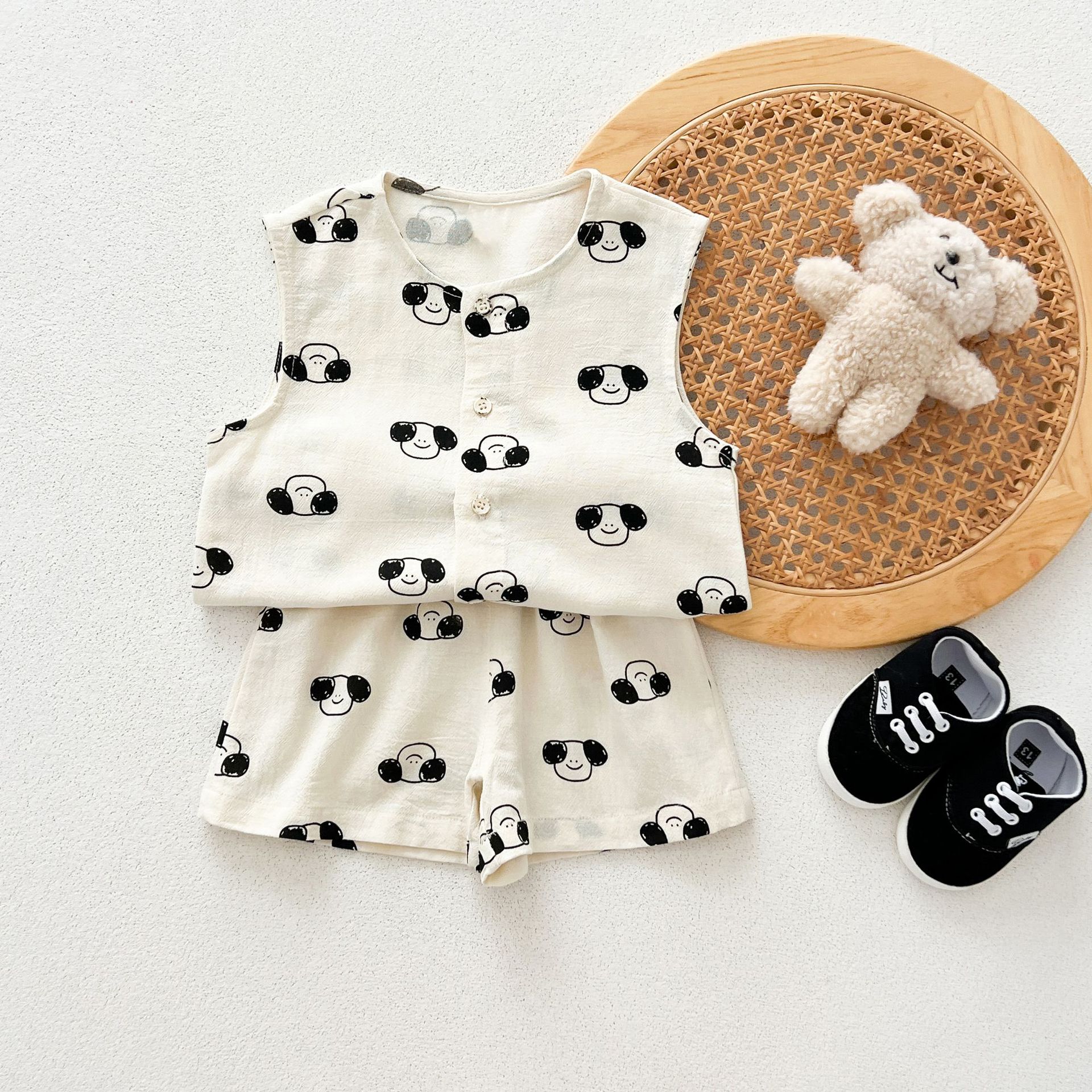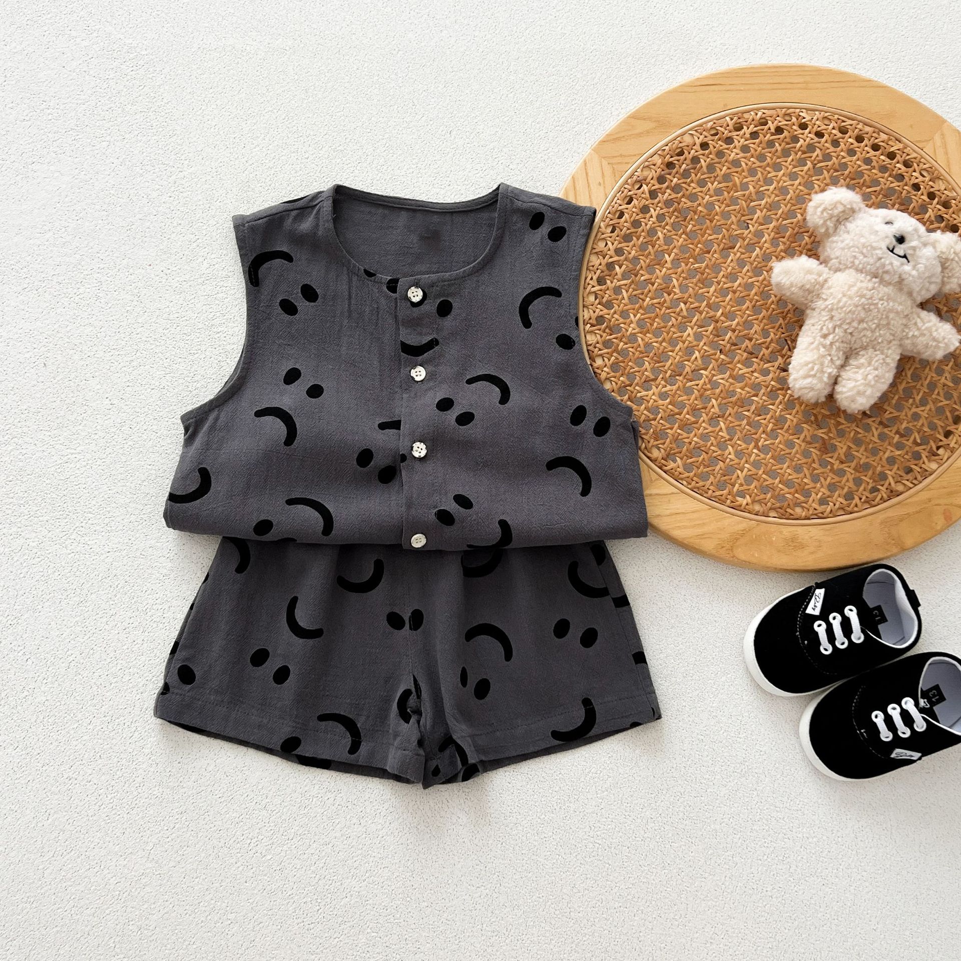 남녀 세트 여름 새 면 투피스 세트 중소 어린이 및 아기의 민소매 탑 바지 느슨하고 편안한
