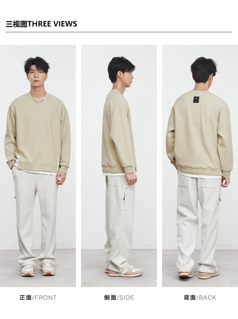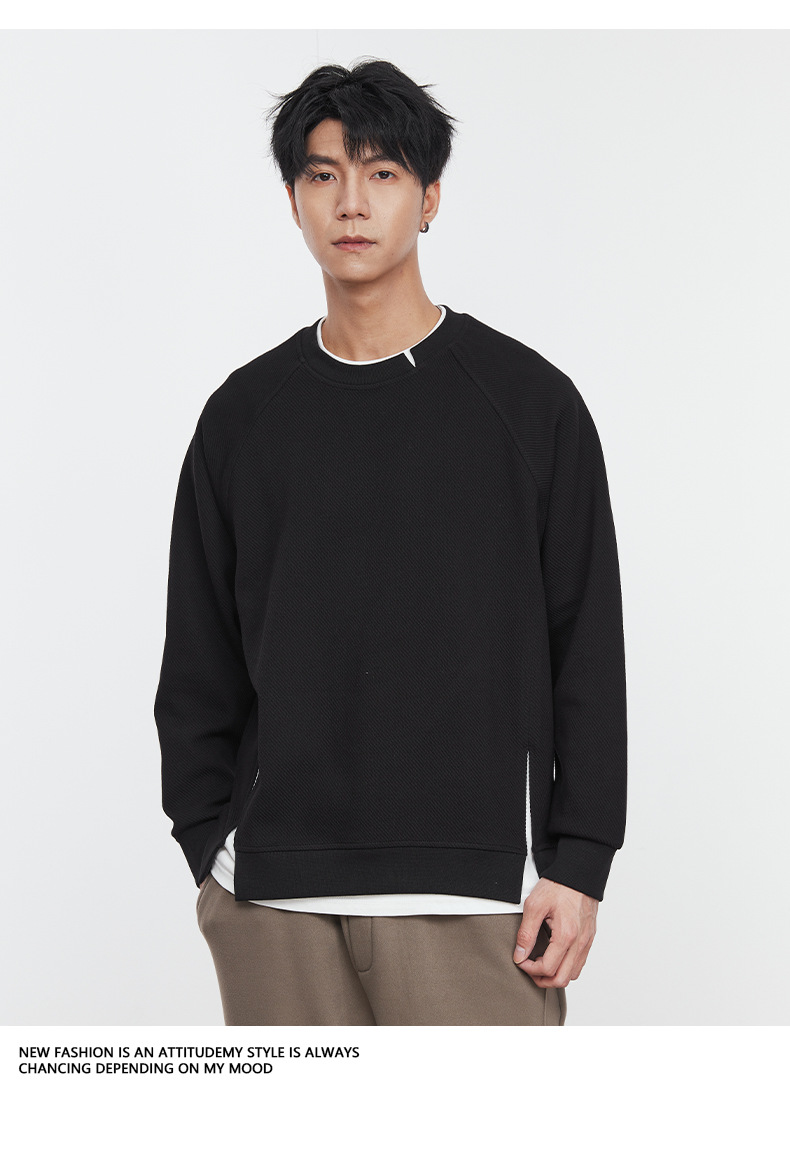 또한 가짜 2 피스 라운드 넥 헤비 스웨터 2024 년 가을과 겨울 새로운 남성 바지 셔츠 내부 재킷 조수스토어 가기