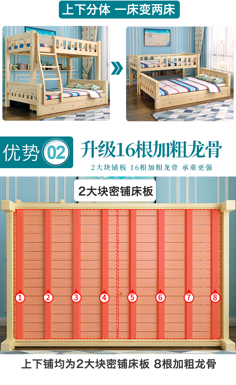 이층 침대 성인 단단한 나무 침대 엄마와 아이 침대 1.9 미터 길이 2 미터 1 미터 느슨한 나무 침대 어린이 높고 낮은 침대스토어 가기