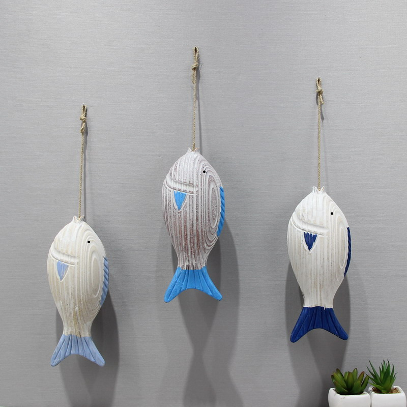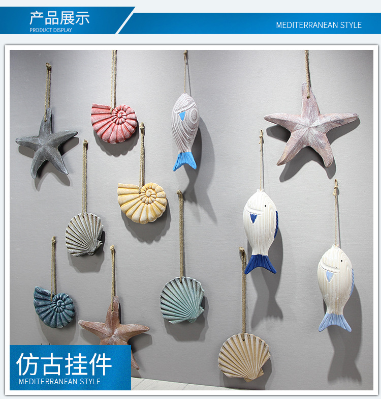 XMZZ10 지중해 빈티지 생선 모양의 펜던트 불가사리 쉘 매달려 벽 장식 바다 스타일 벽