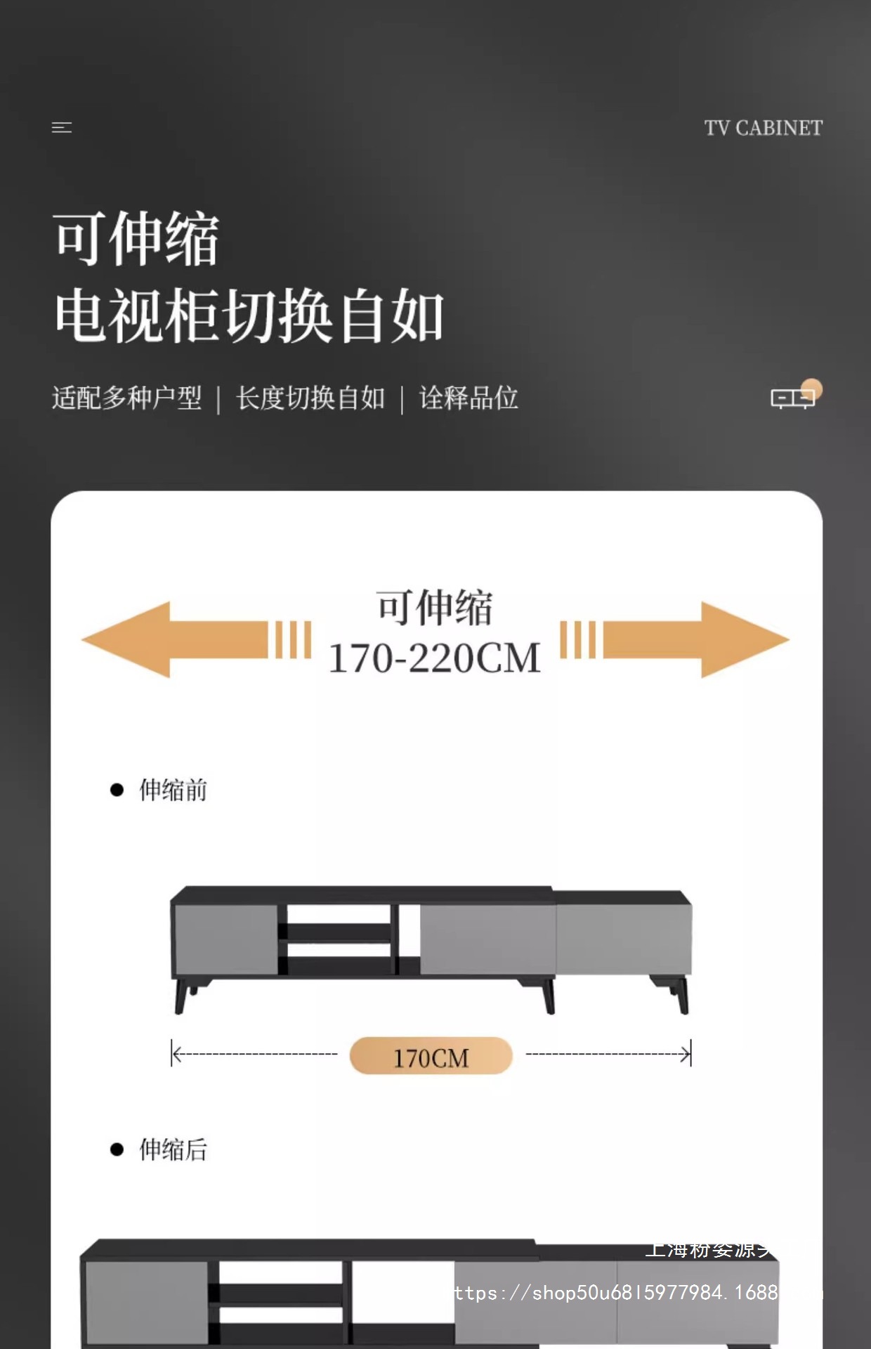 • [180cm TV장 + 사이드 캐비닛] 블랙 + 스카이 그레이