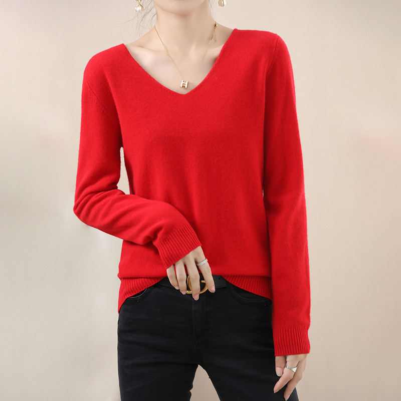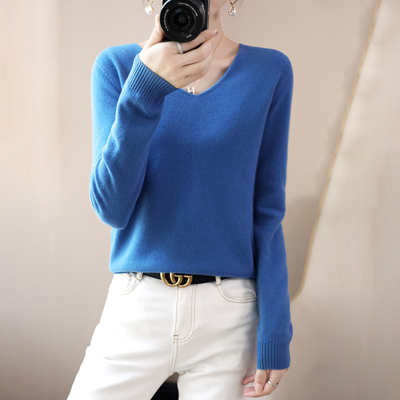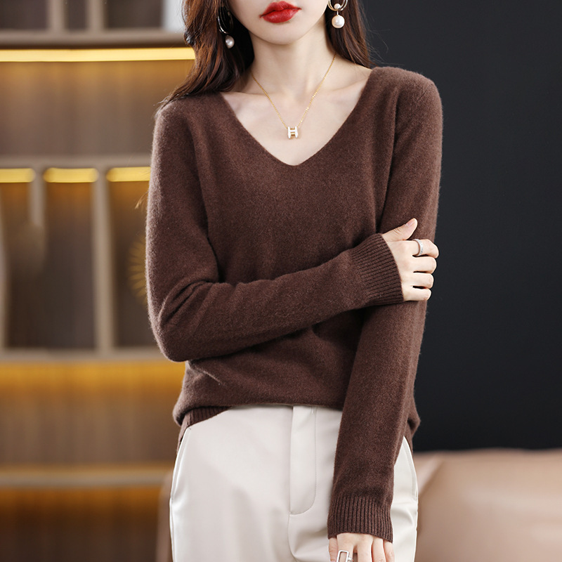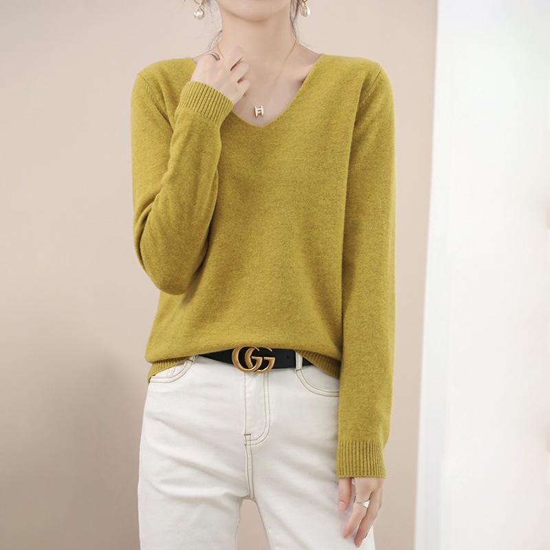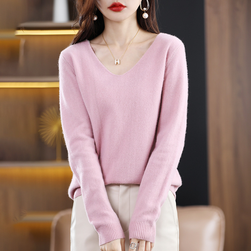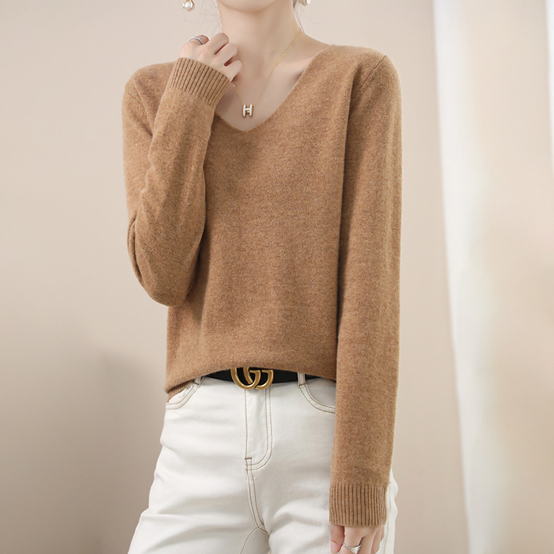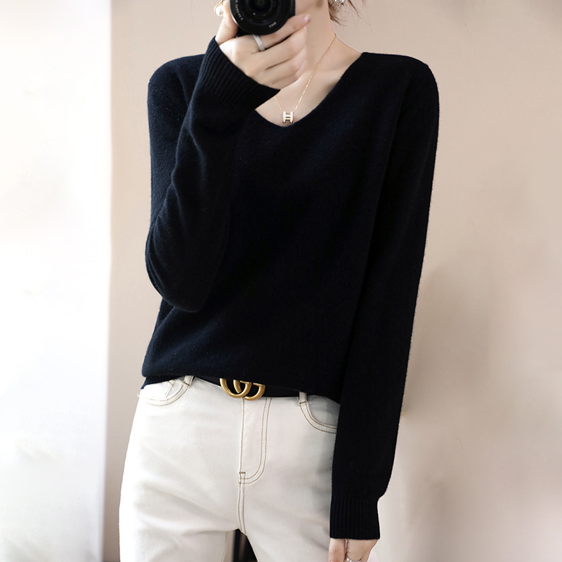 2024 가을과 겨울 양모 블렌드 작은 V 넥 솔리드 컬러 느슨한 내베이스와 새로운 짧은 스타일 한국 니트 스웨터스토어 가기
