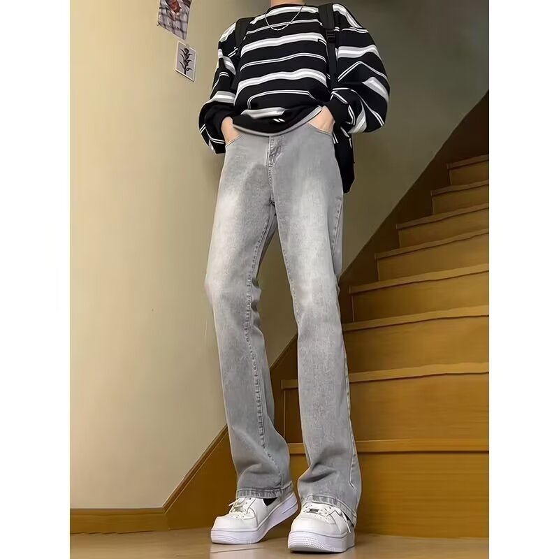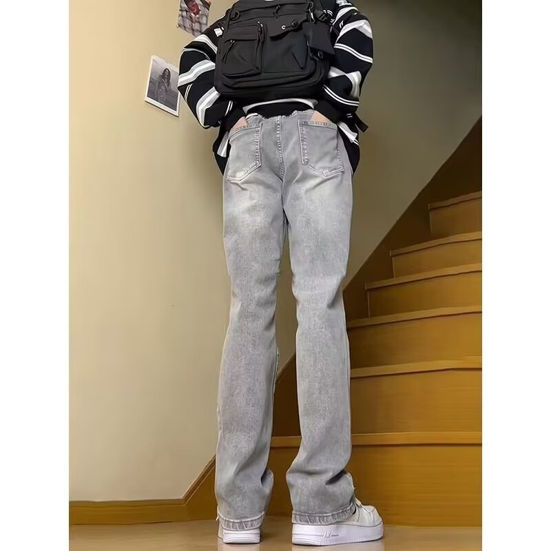 2024 아메리칸 스타일 레트로 블루 청바지 남자 겨울 슬림 핏 좁은 바지 키 큰 마이크로 스트레이트 바지