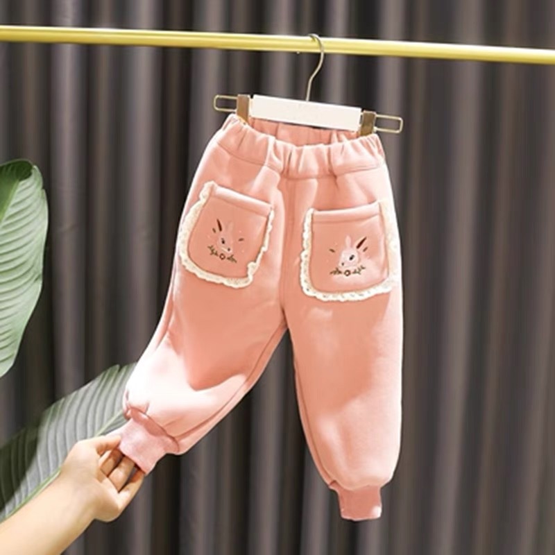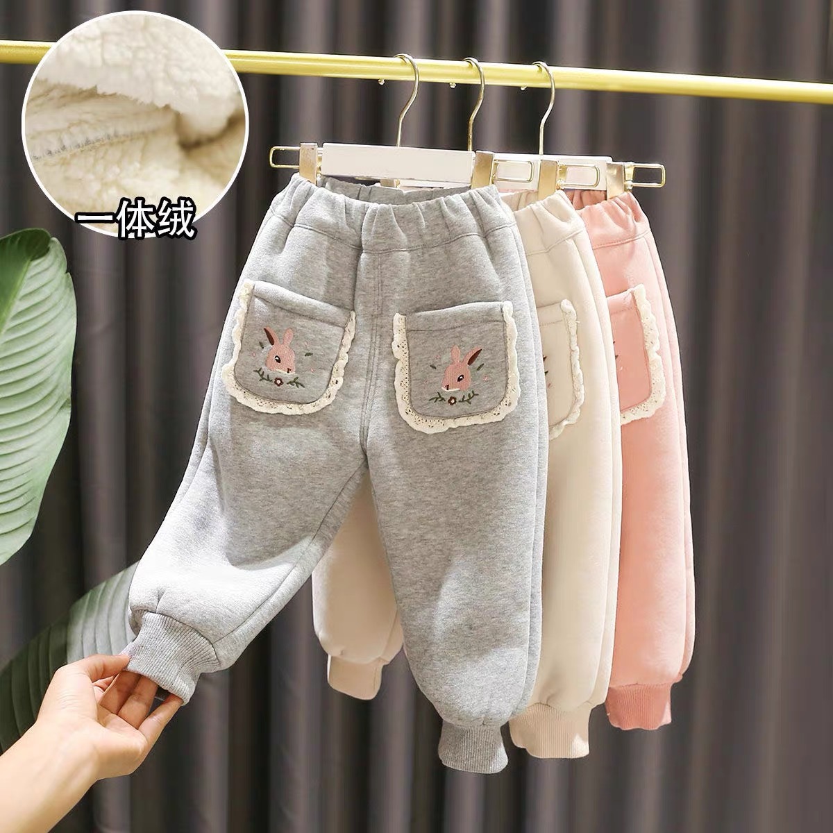 1-6 세 아기 소녀 패션 한 양고기 양털 캐주얼 바지 어린이 겨울 소녀 기모 두꺼운 만화 면화 바지 3스토어 가기