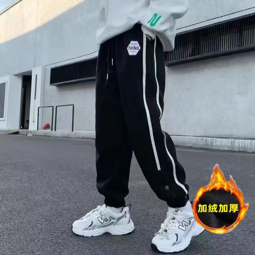 소년 기모 바지 어린이 느슨한 운동복 2024 새로운 원피스 양털 겨울 스포츠 바지스토어 가기
