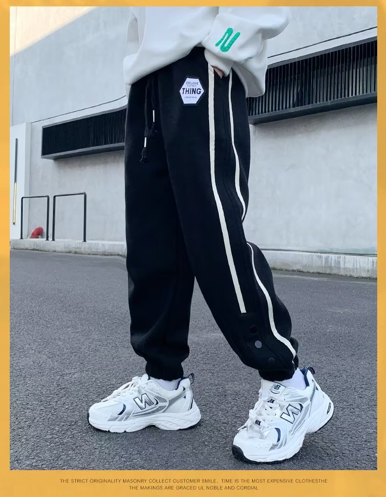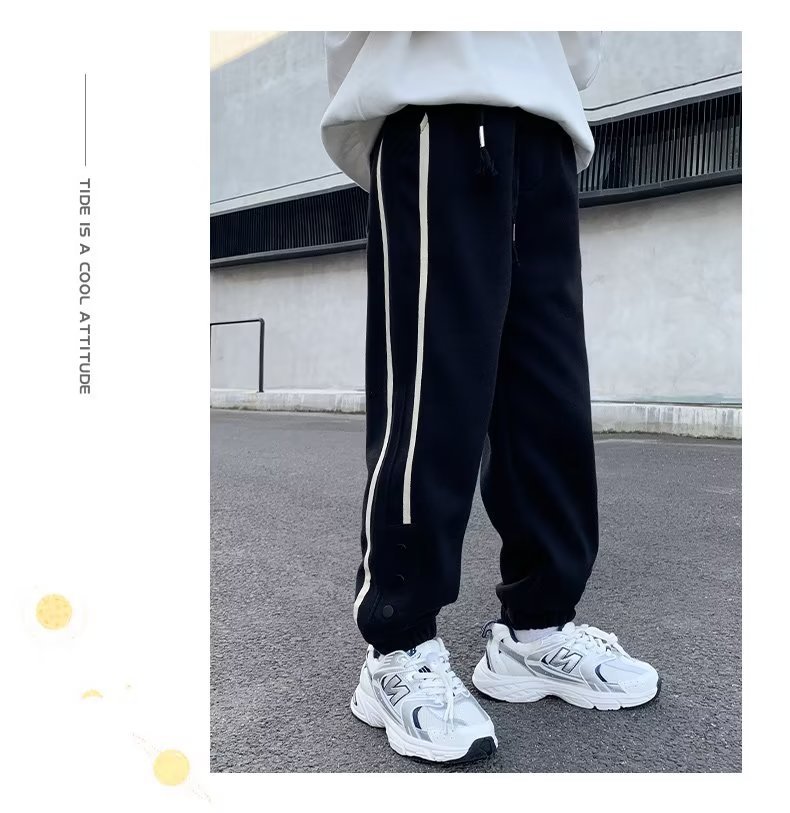 소년 기모 바지 어린이 느슨한 운동복 2024 새로운 원피스 양털 겨울 스포츠 바지