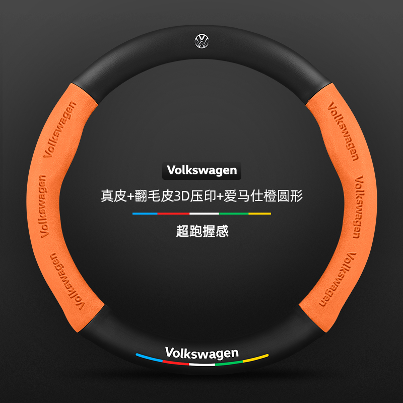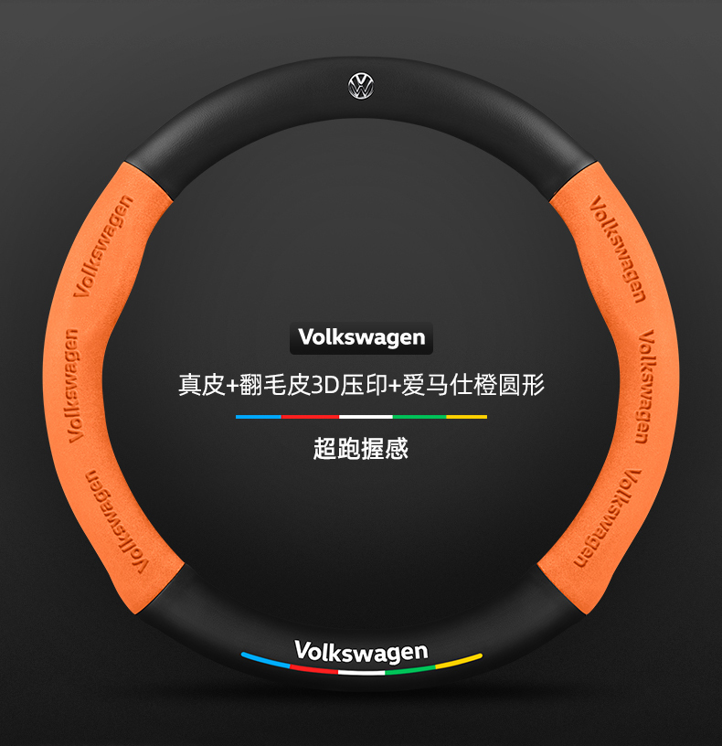 • 정품 가죽 스웨이드 3D 엠보싱 에르메스 오렌지 라운드 폭스바겐 로고