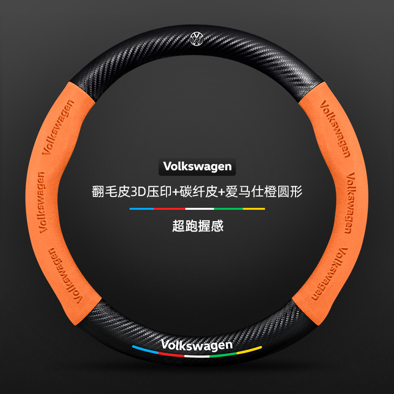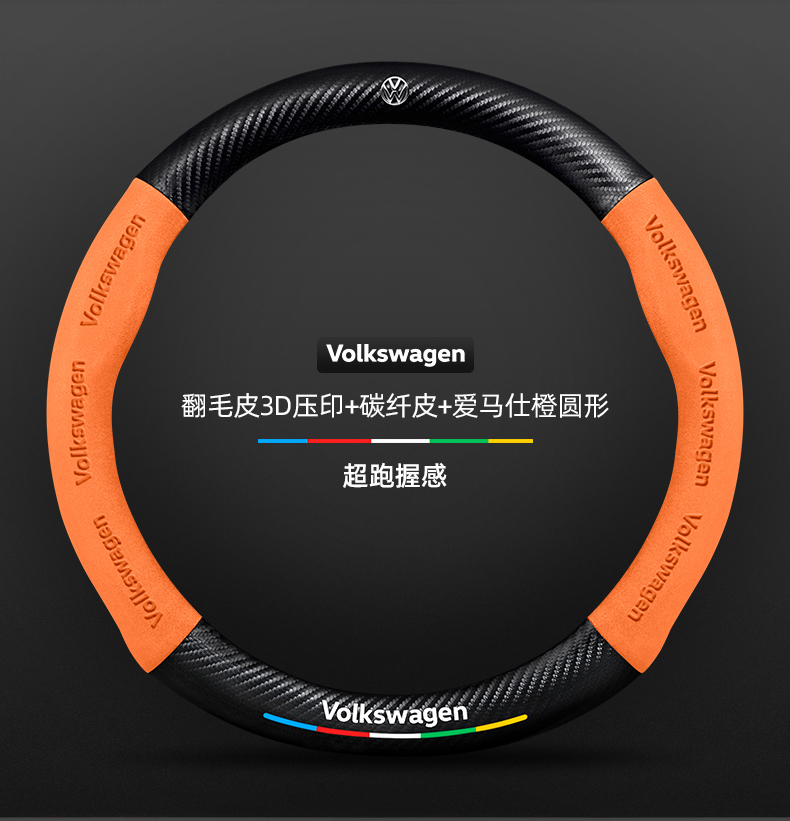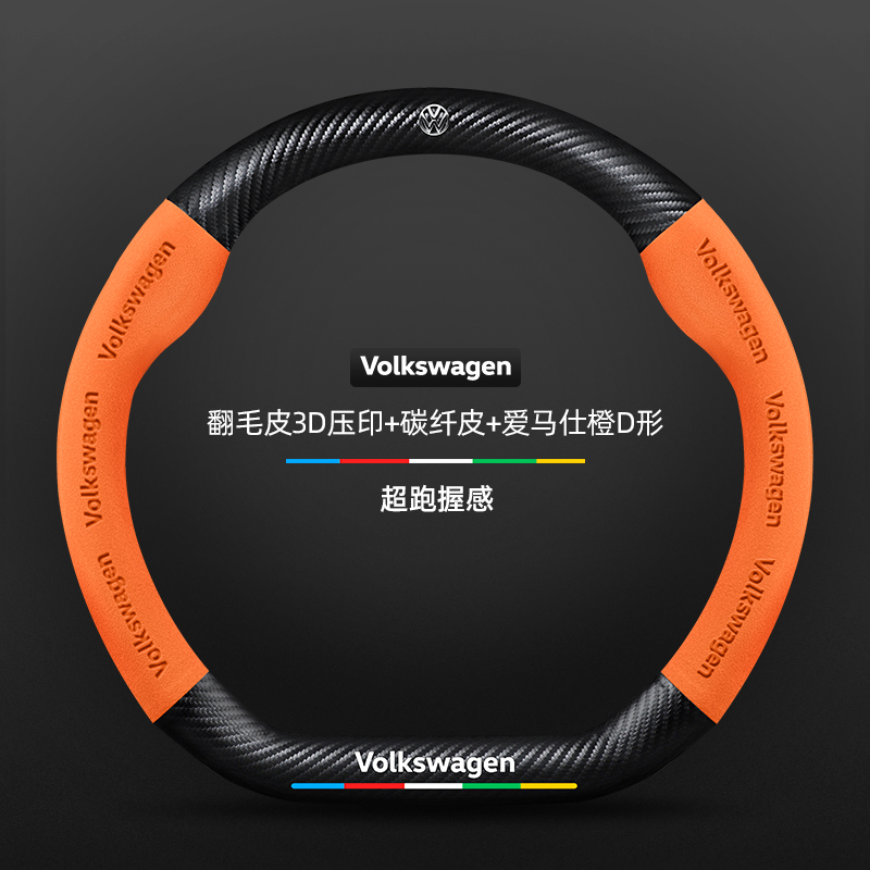 • 스웨이드 3D 엠보싱 탄소 섬유 가죽 에르메스 오렌지 D자형 폭스바겐 로고