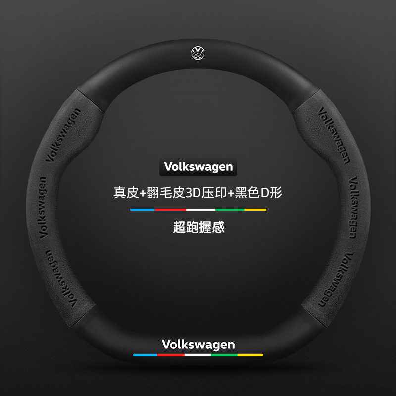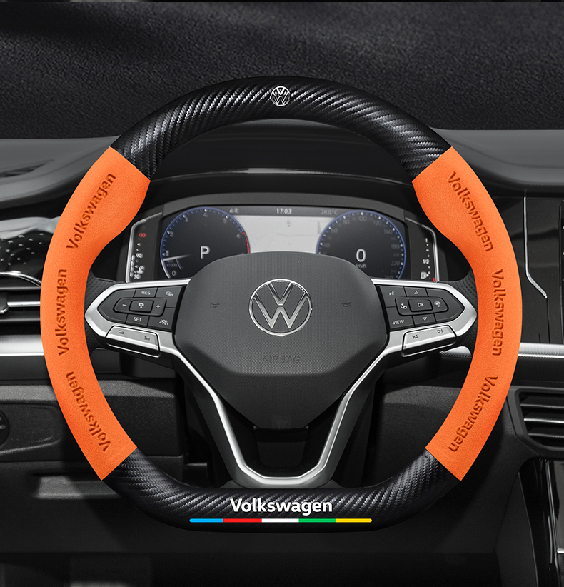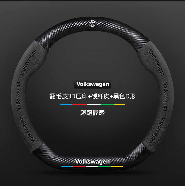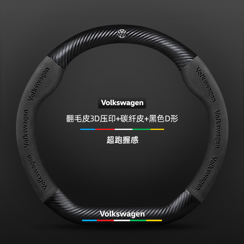 • 스웨이드 3D 엠보싱 탄소 섬유 가죽 블랙 D자형 폭스바겐 로고