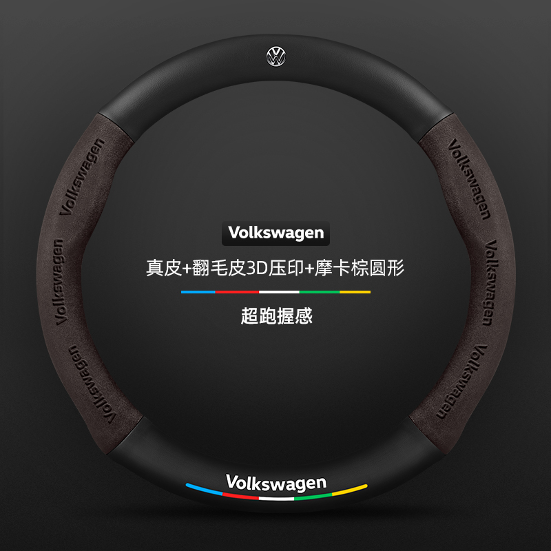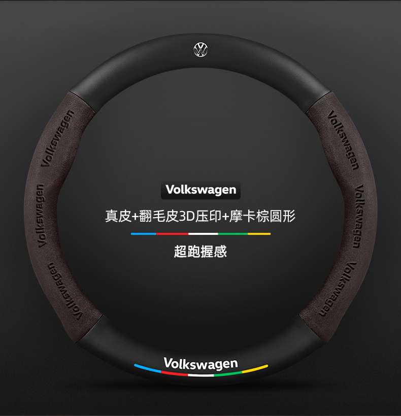 • 천연가죽 스웨이드 3D 엠보싱 모카 브라운 라운드 폭스바겐 로고