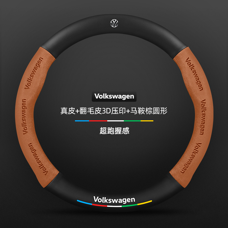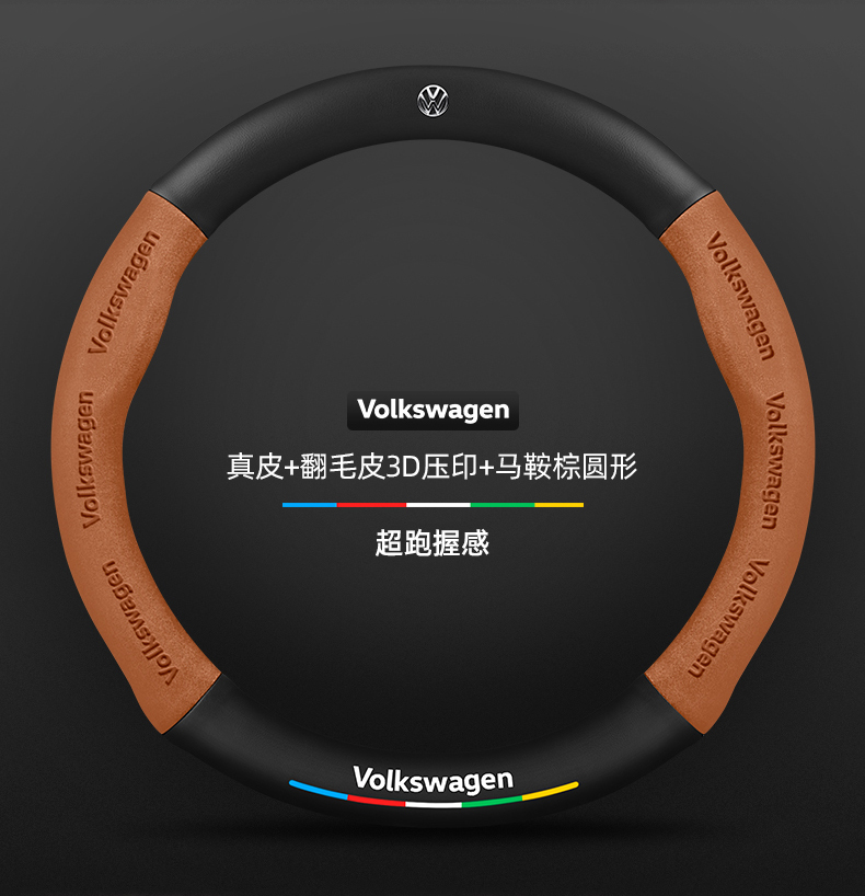 • 정품 가죽 스웨이드 3D 엠보싱 새들 브라운 라운드 폭스바겐 로고