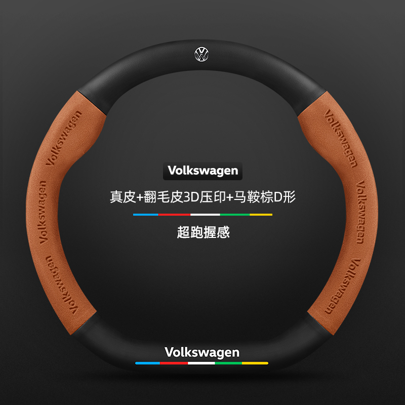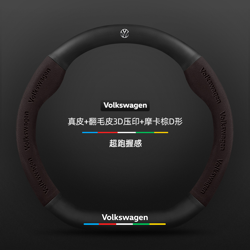 • 천연가죽 스웨이드 3D 엠보싱 모카브라운 D자형 폭스바겐 로고