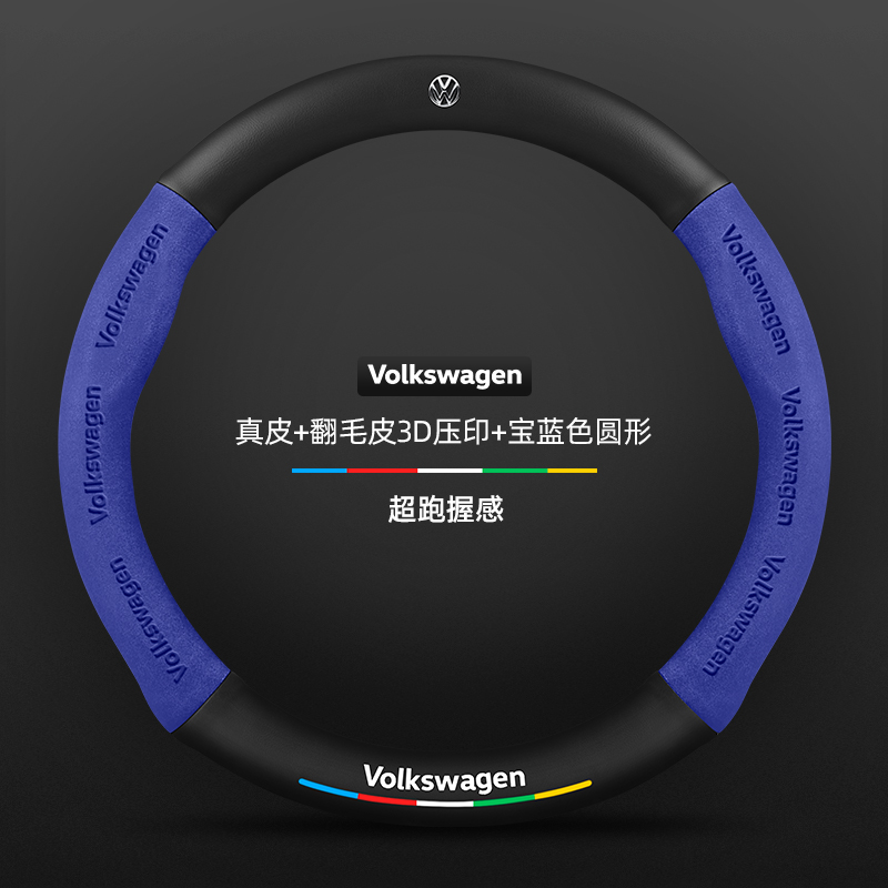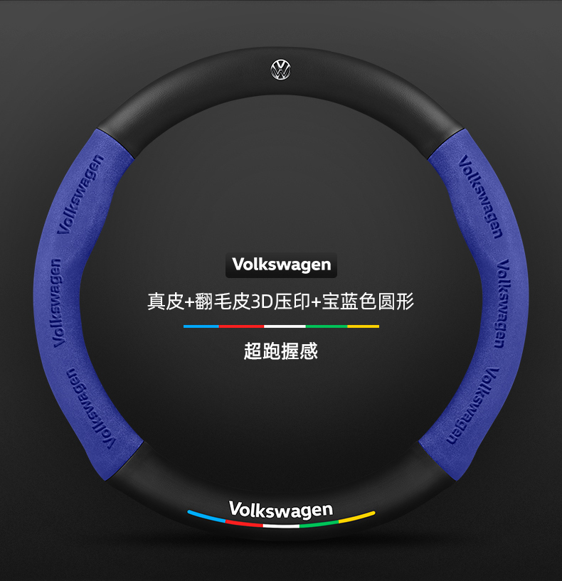 • 천연 가죽 스웨이드 3D 엠보싱 로얄 블루 라운드 폭스바겐 로고