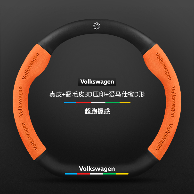 • 천연가죽 스웨이드 3D 엠보싱 에르메스 오렌지 D자형 폭스바겐 로고