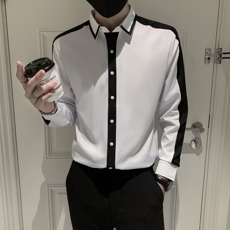 남자 흰 셔츠 남자 긴팔 한국 스타일 유행 잘 생긴 가을 옷 새로운 하이 엔드 셔츠 2024