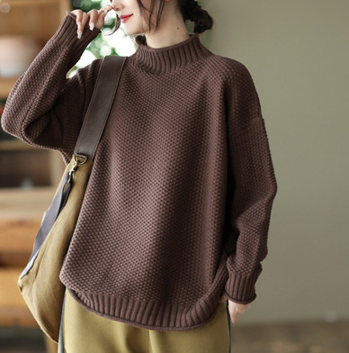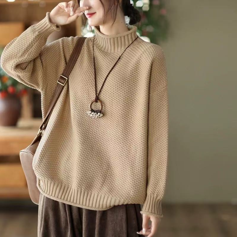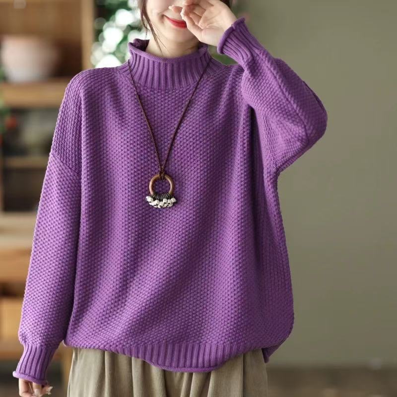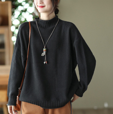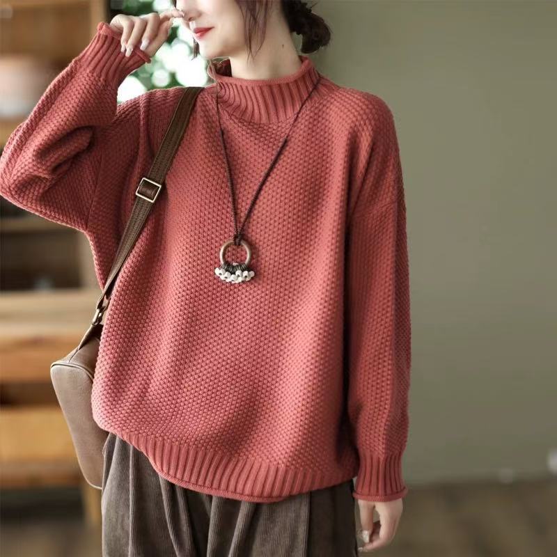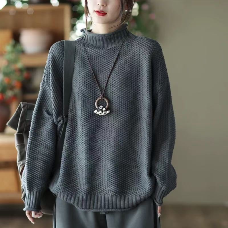 겨울 새로운 레트로 코튼 니트 풀오버 여성의 느슨한 롤업 긴팔 예술적 슬림 스웨터