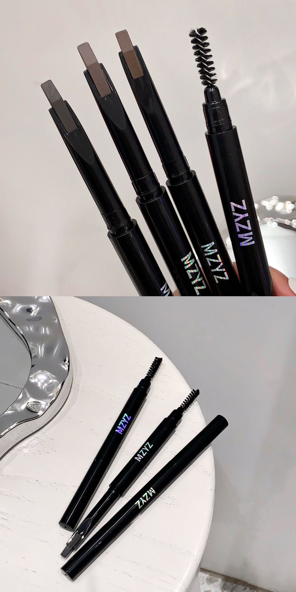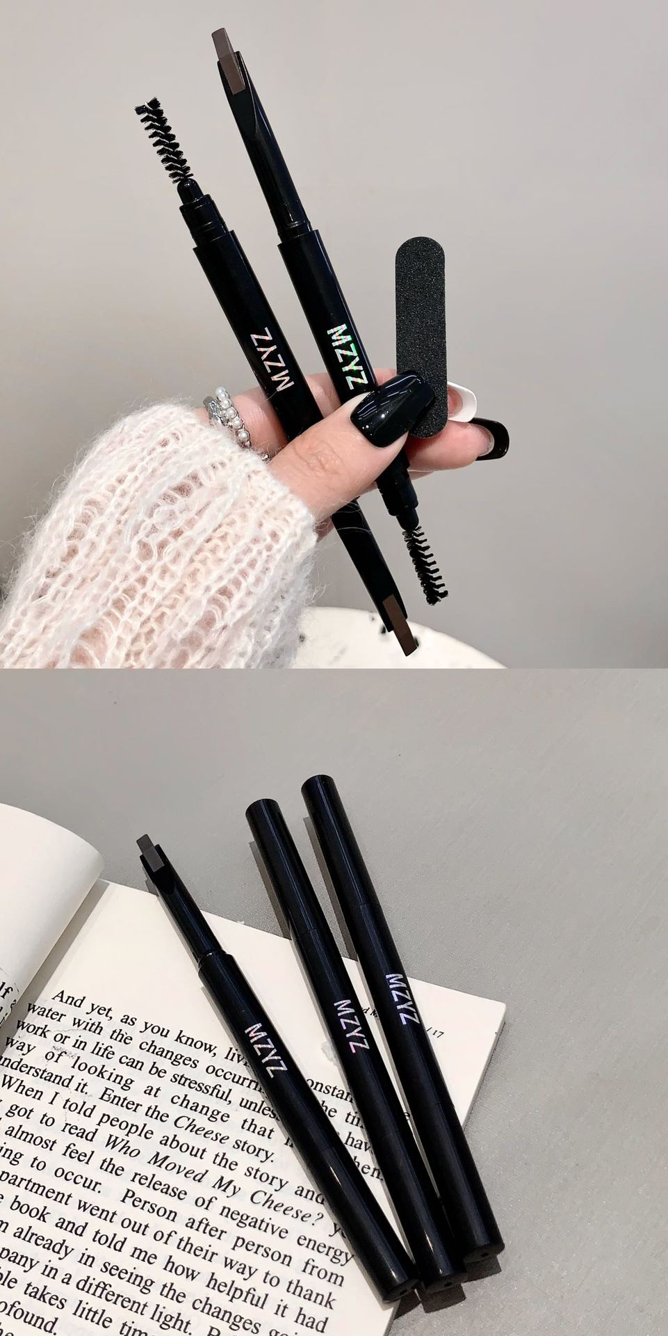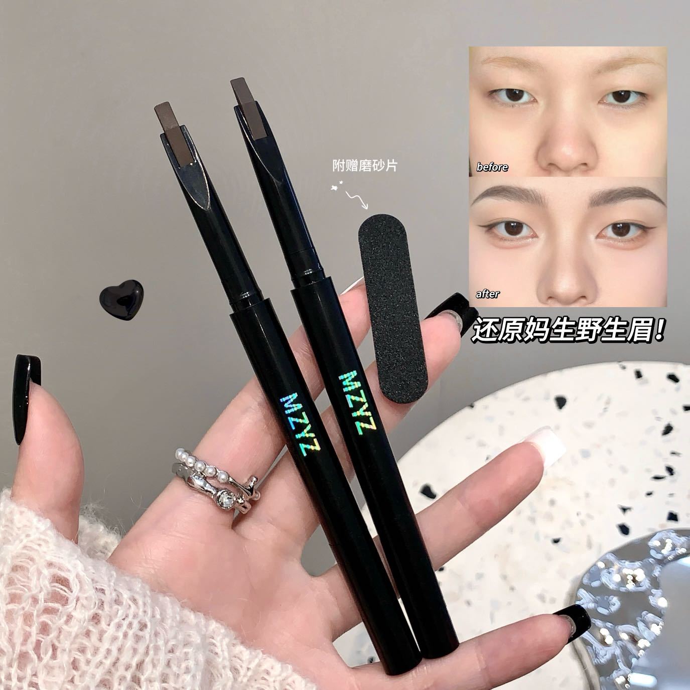 MZYZ machete 눈썹 연필 작은 tomahawk 더블 눈썹 연필 방수 땀 방지 지속적인 메이크업 뿌리 뚜렷한 야생 눈썹 여성