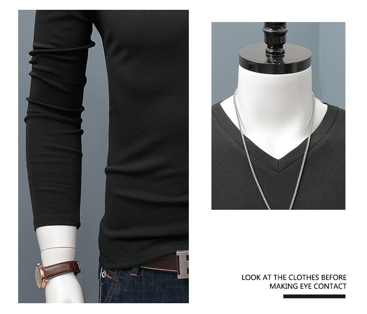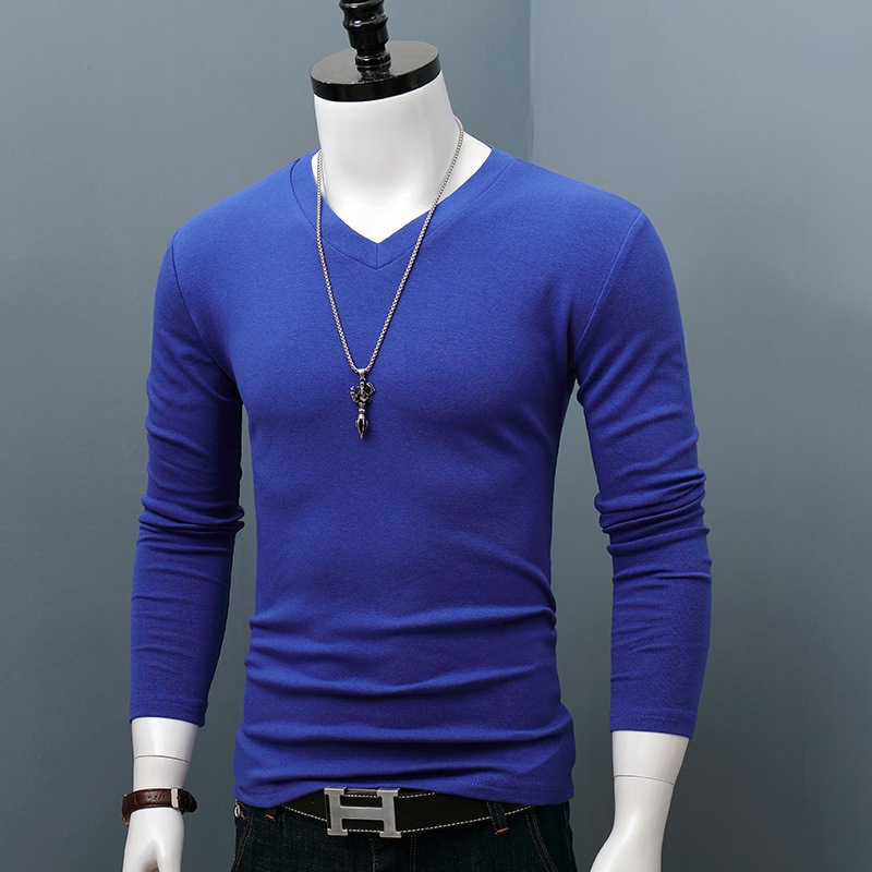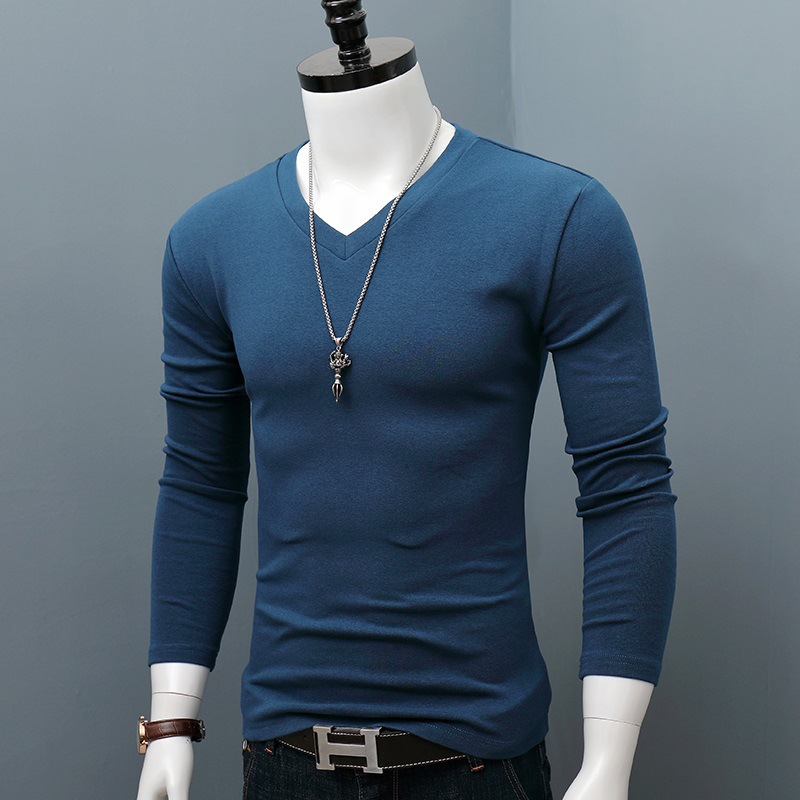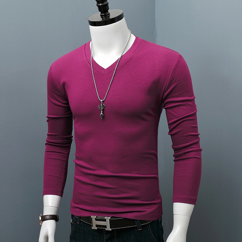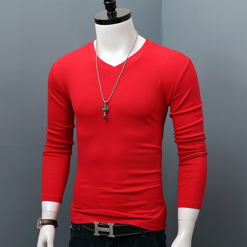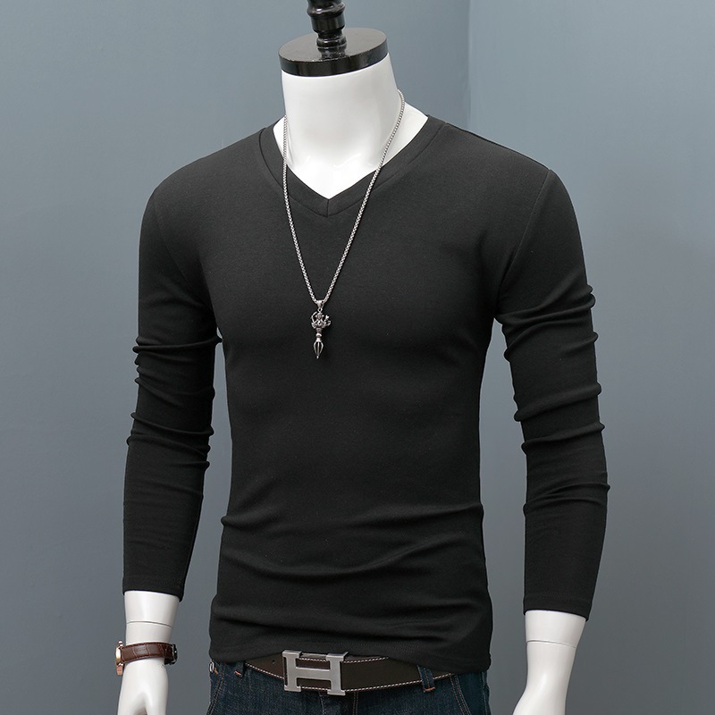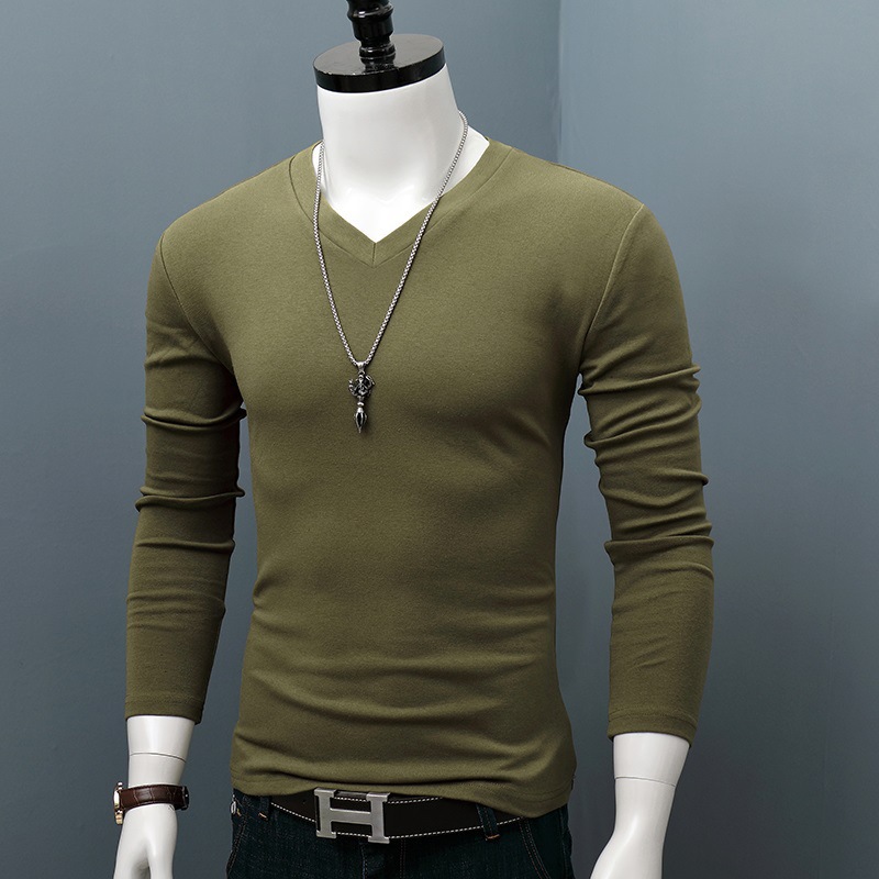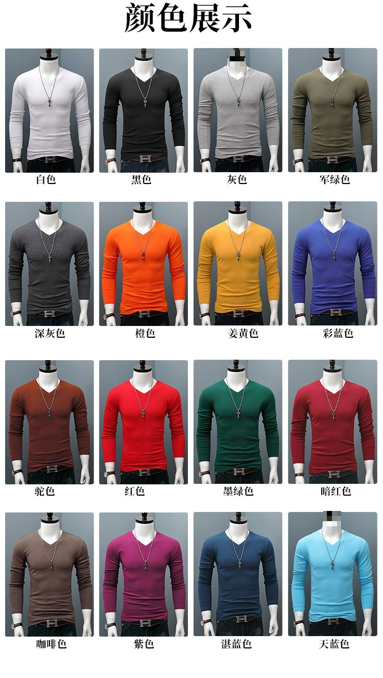 순면 V-목 긴팔 티셔츠 남성용 단색 슬림 플러스 사이즈 베이스 셔츠 가을과 겨울 내통 두꺼운 청년을 위한 따뜻한 탑스토어 가기