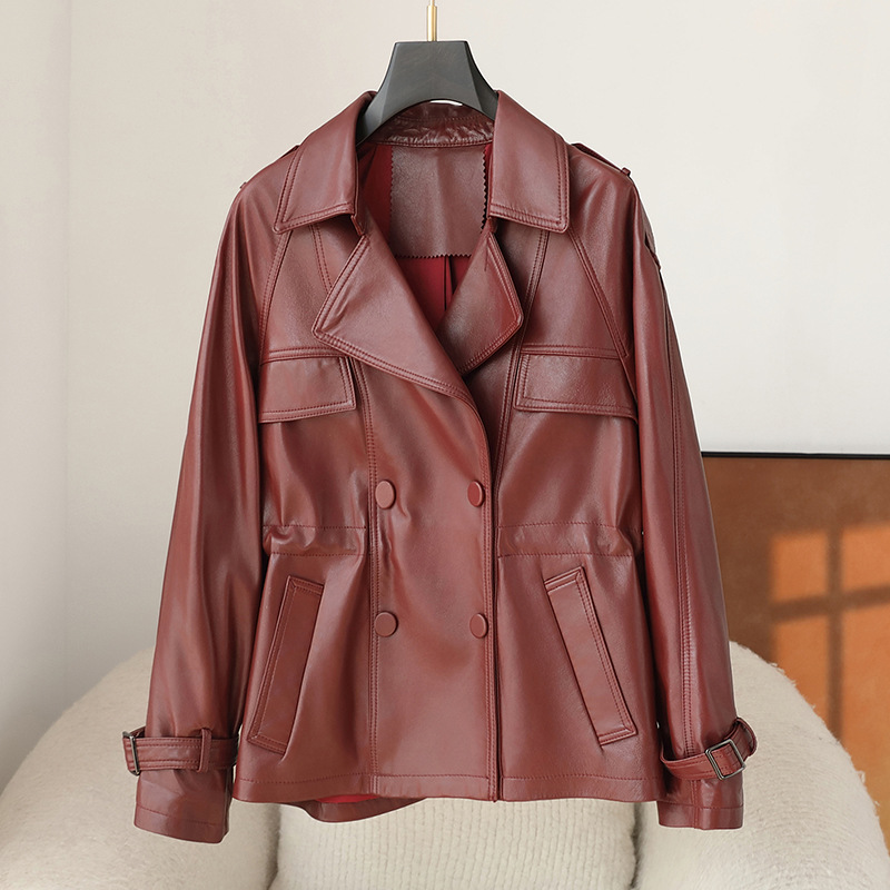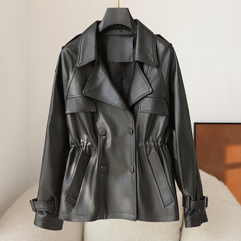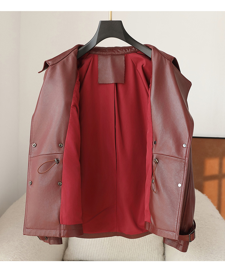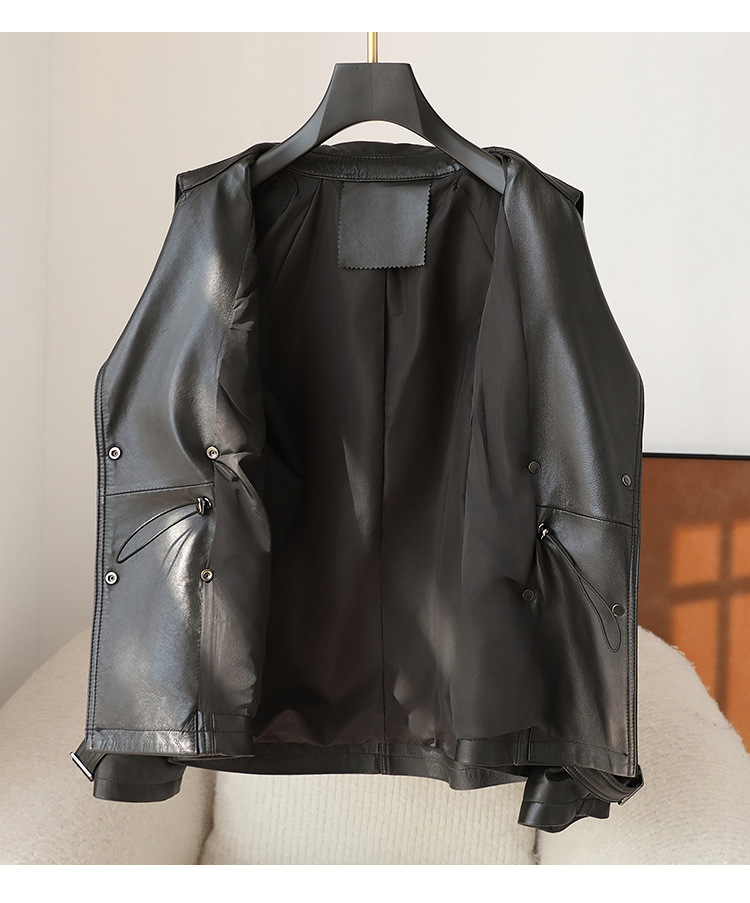 2025 가을, 겨울 새로운 양피 정품 가죽 자켓 여성 짧은 하이 엔드 오토바이 자켓 가죽 자켓 여성