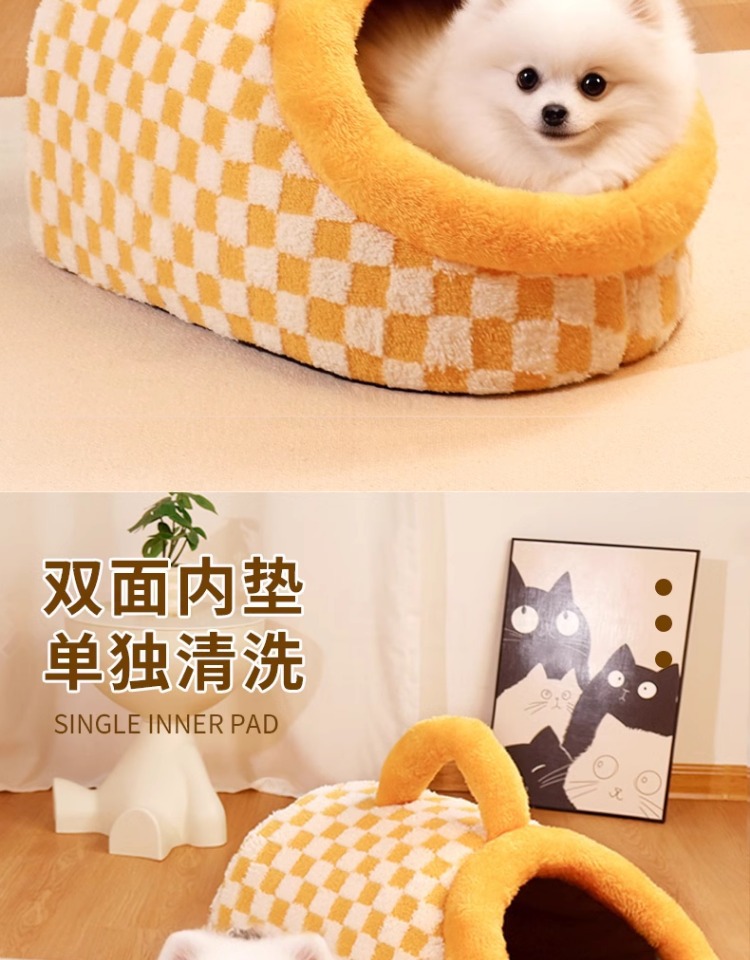 • 노란색과 흰색 격자 무늬 + 담요 [두껍고 따뜻한 업그레이드] 체스판은 둥지를 들어 올릴 수 있습니다