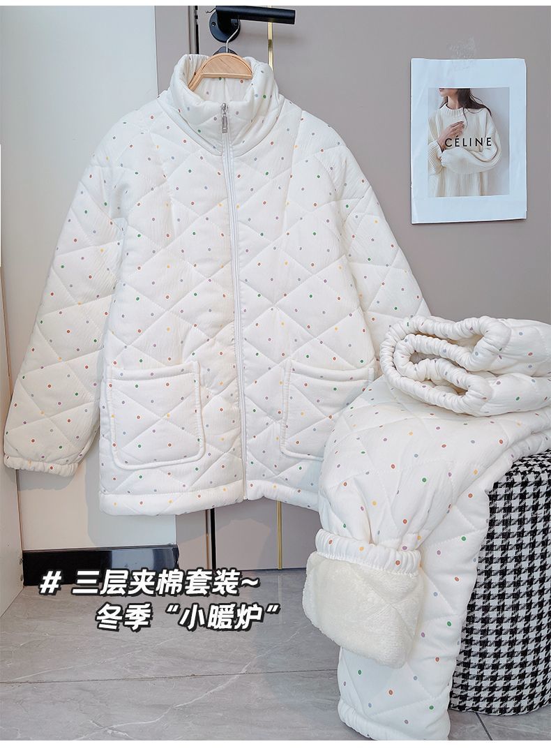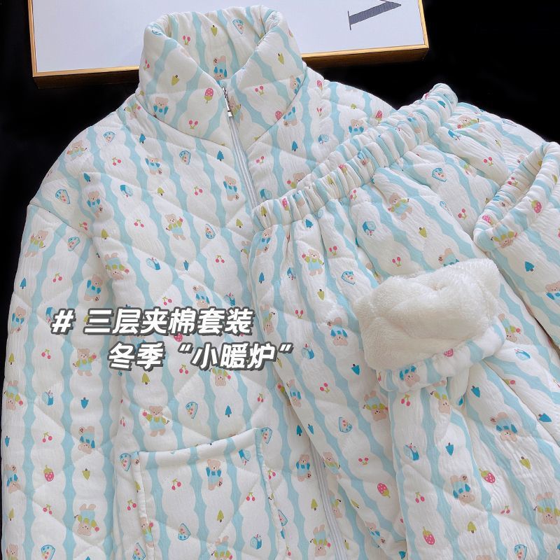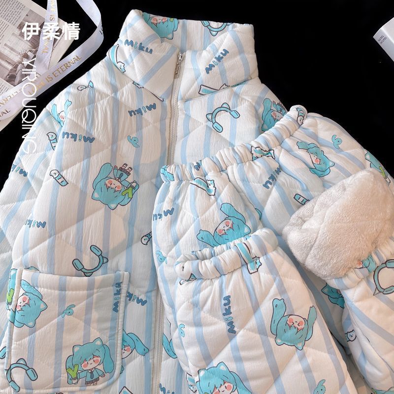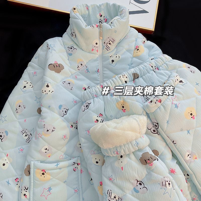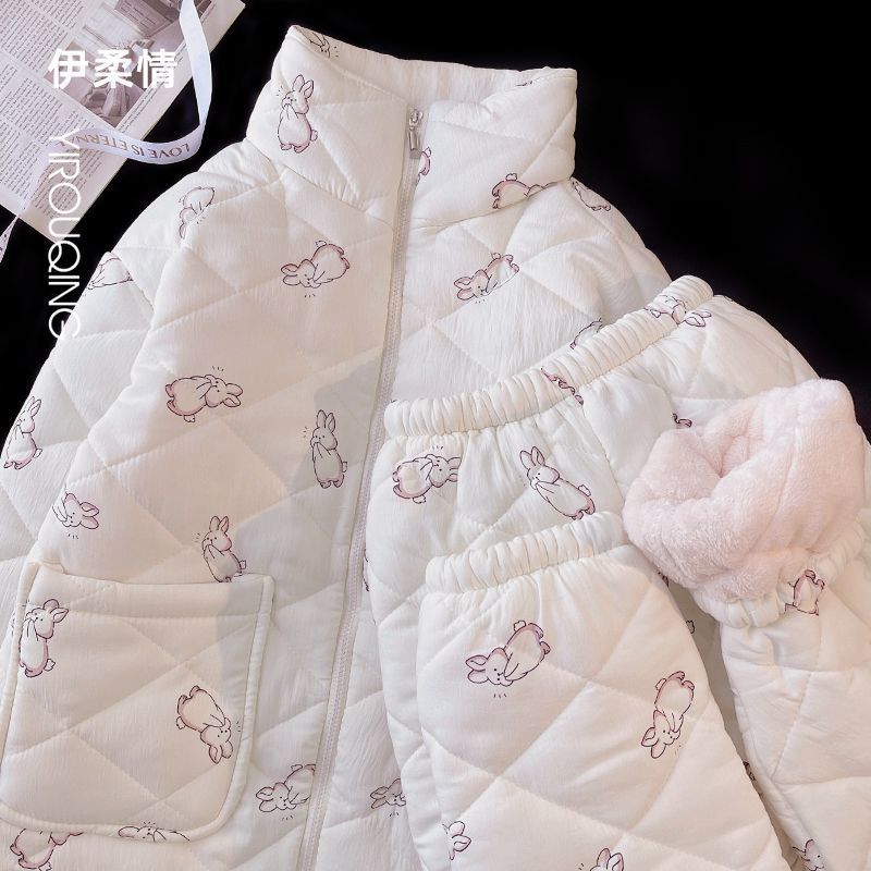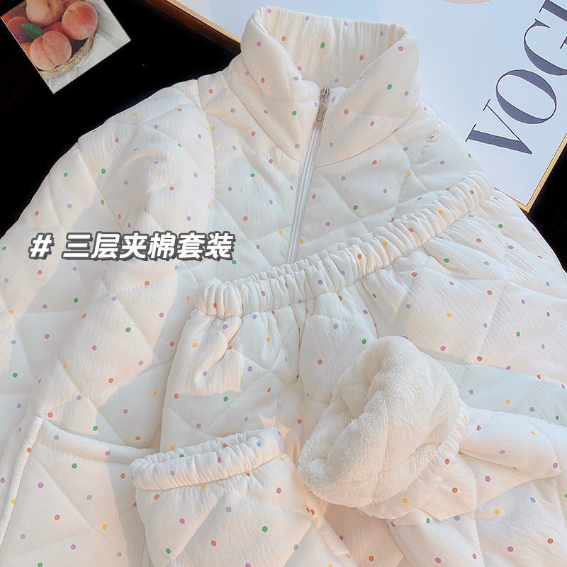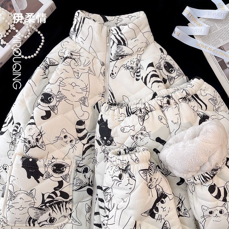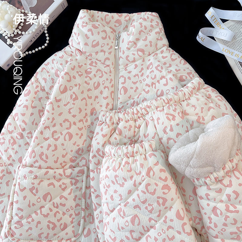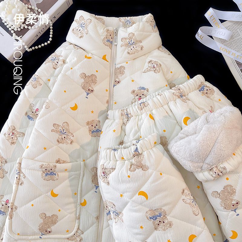 겨울 기모 두꺼운 슈퍼 두꺼운 감기 방지 따뜻한 냉동 파자마 여성용 면화 패딩 코트 10 대를위한 겨울 저항성 세트스토어 가기