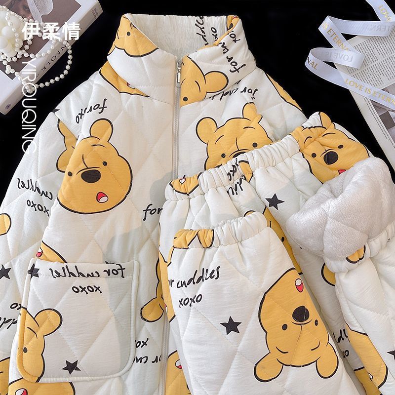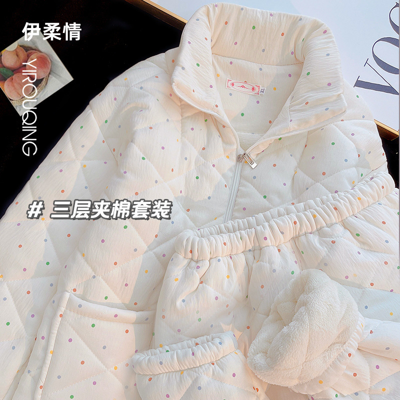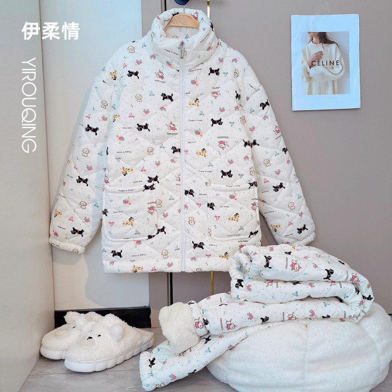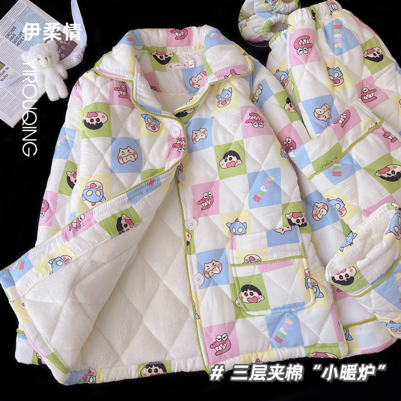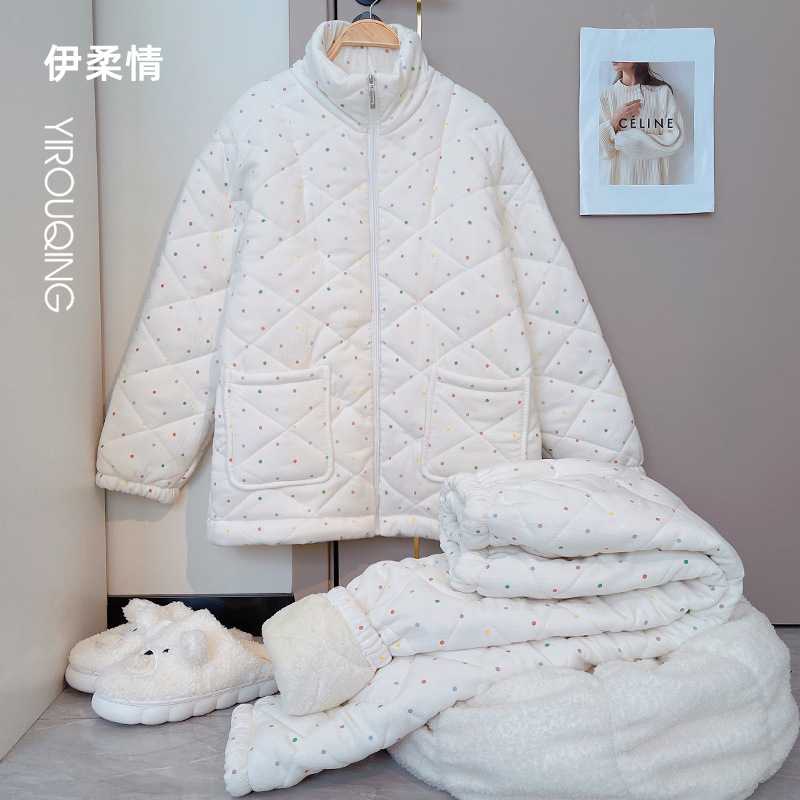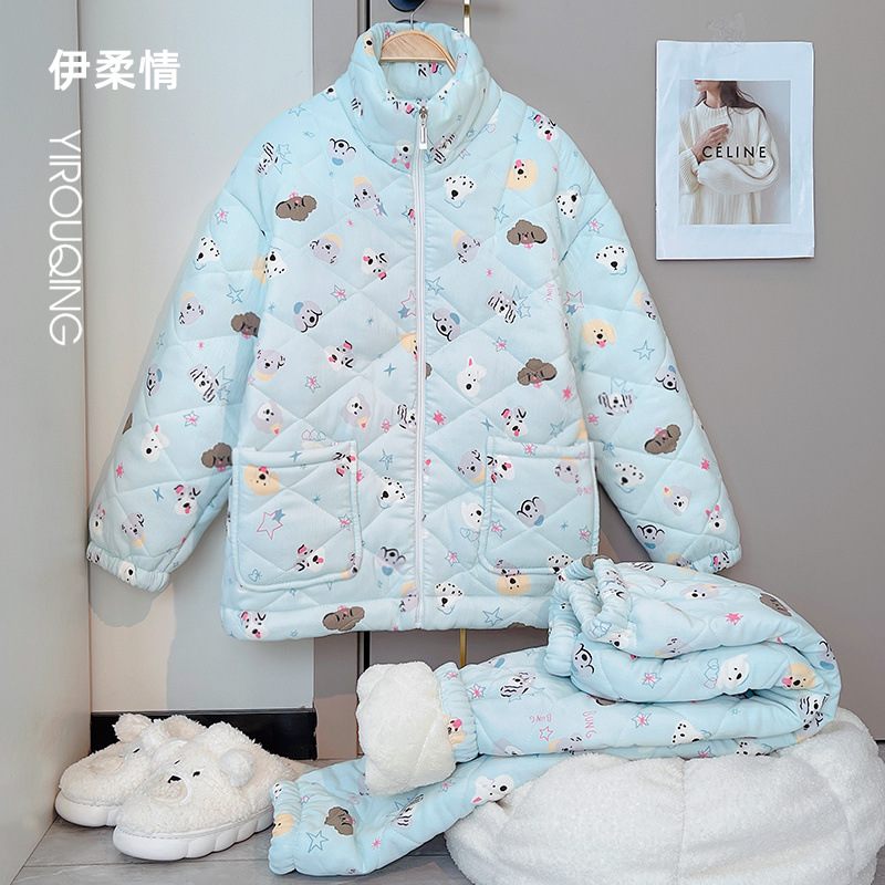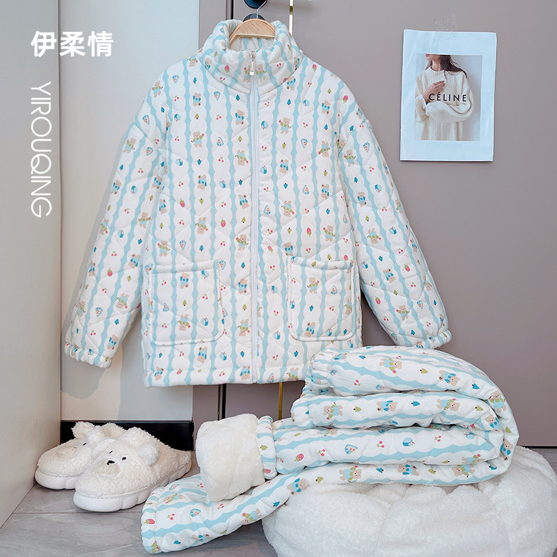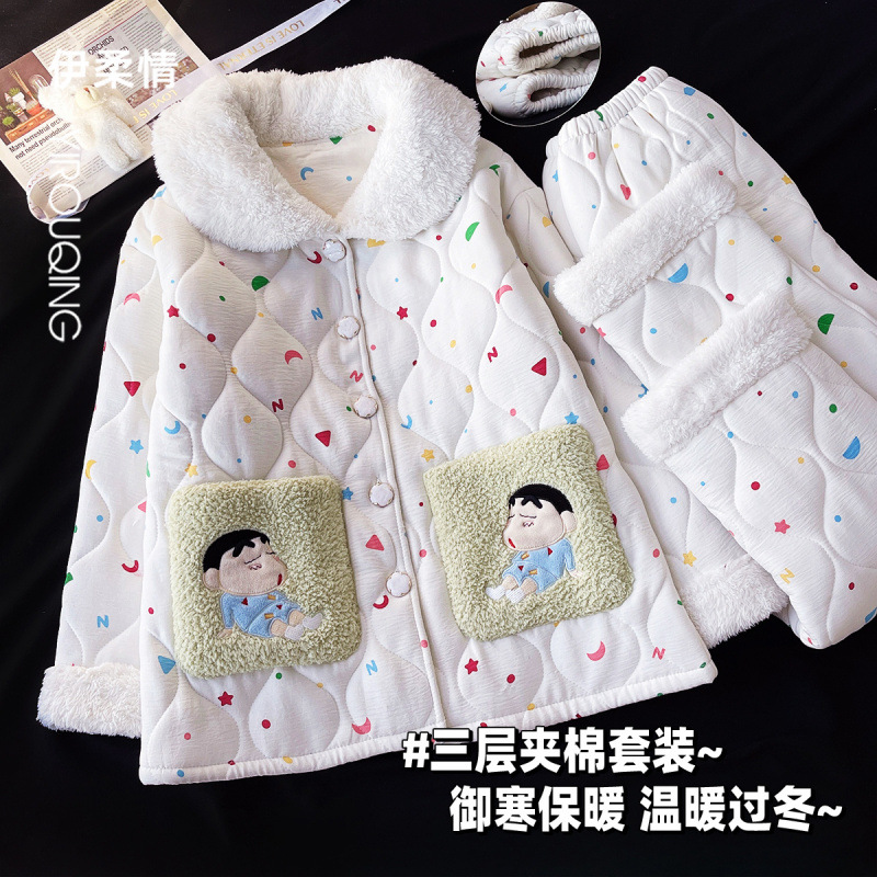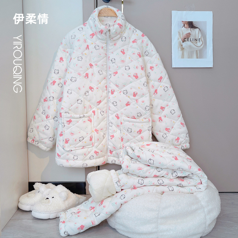 겨울 기모 두꺼운 슈퍼 두꺼운 감기 방지 따뜻한 냉동 파자마 여성용 면화 패딩 코트 10 대를위한 겨울 저항성 세트스토어 가기