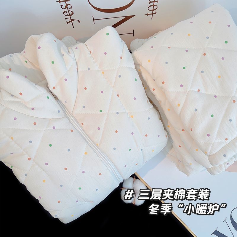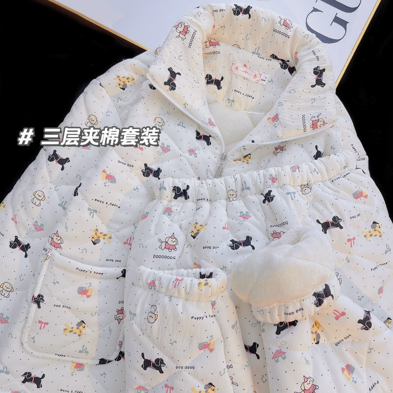 겨울 기모 두꺼운 슈퍼 두꺼운 감기 방지 따뜻한 냉동 파자마 여성용 면화 패딩 코트 10 대를위한 겨울 저항성 세트