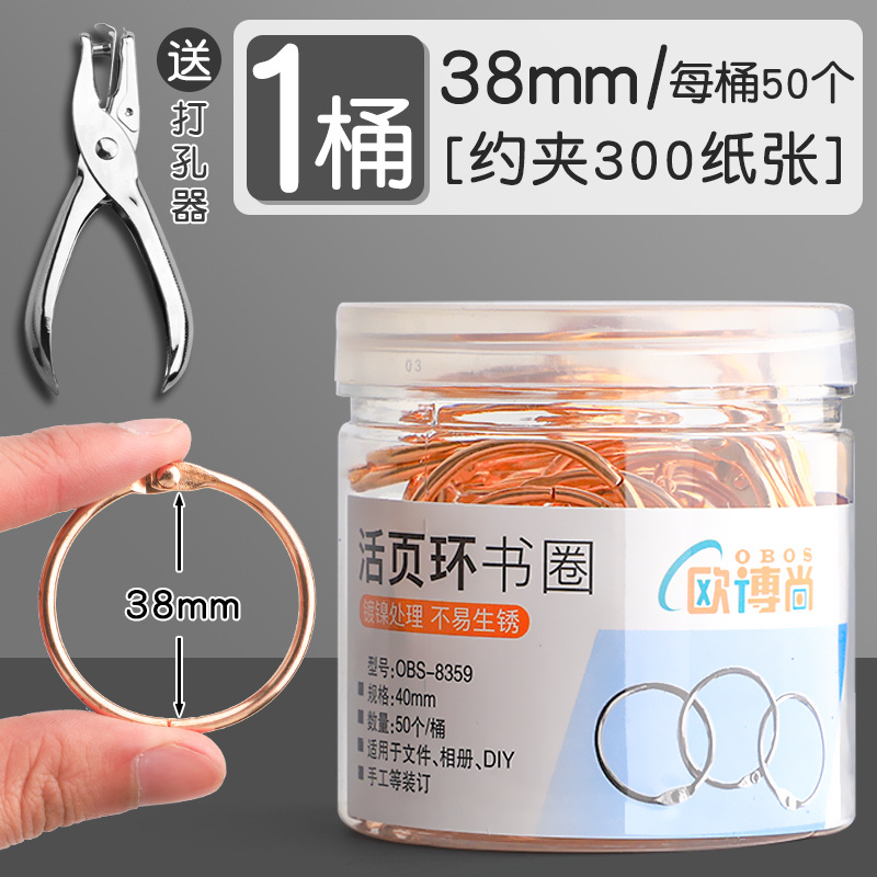 • [50개입] 38mm 로즈 골드 루스리프 링/홀 펀치 포함