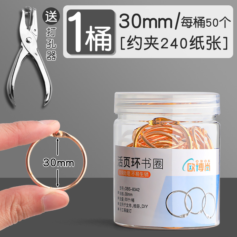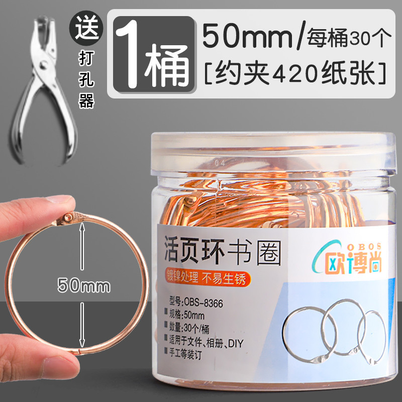 • [50개입] 30mm 로즈 골드 루스리프 링/홀 펀치 포함