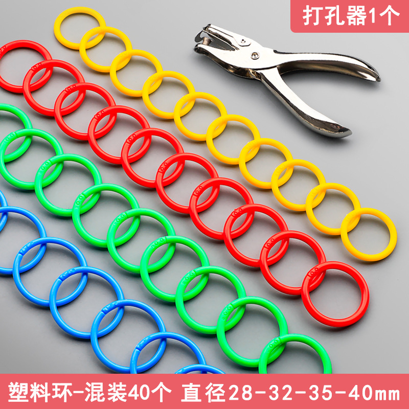 • 구멍 펀치 1개 + 28-32-35-40mm 플라스틱 링 40개 혼합