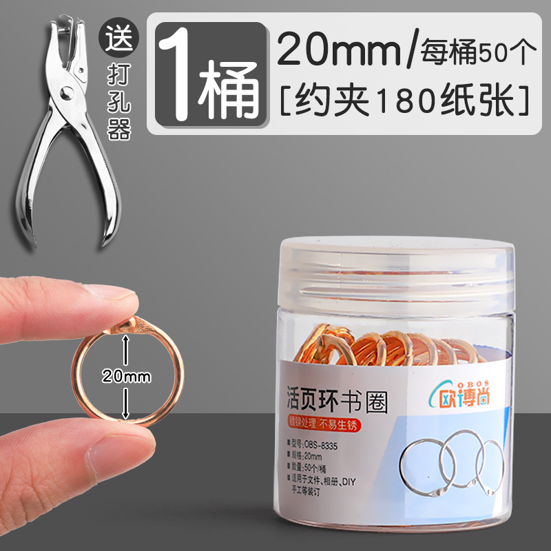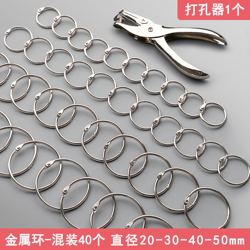 • 홀 펀치 1개 + 20-30-40-50mm 금속 링 40개 혼합