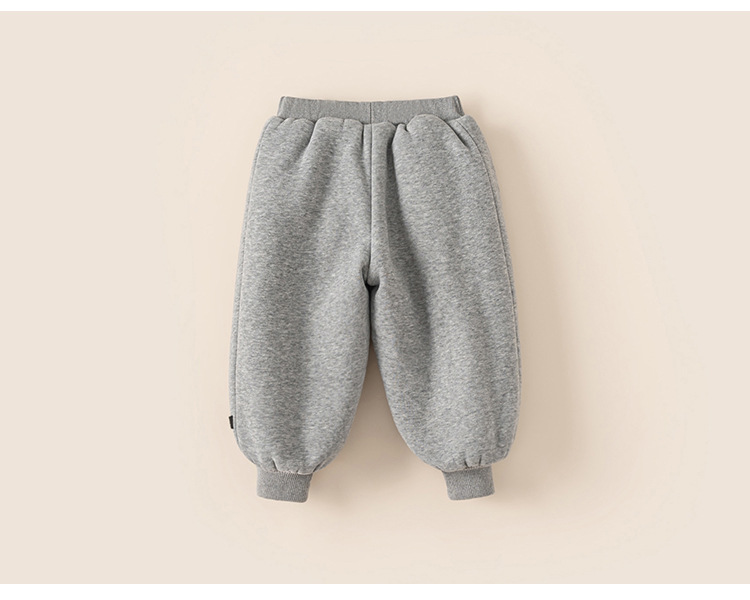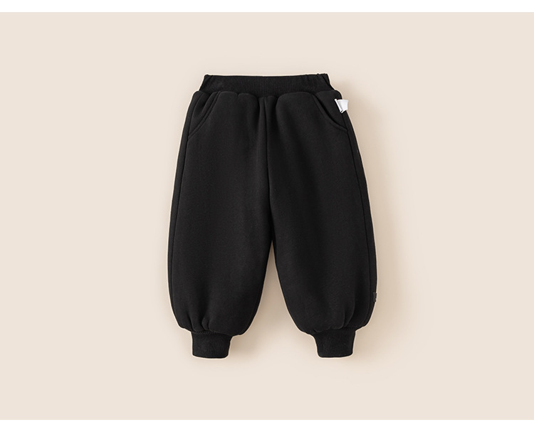 방산 아동복 겨울 두꺼운 바지 소년 단색 기모 캐주얼 바지 소년 간단한 라벨 바지