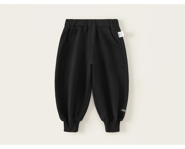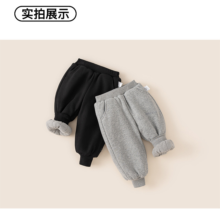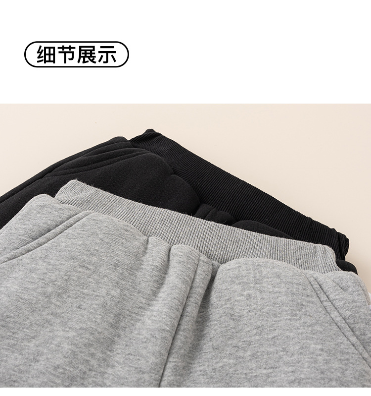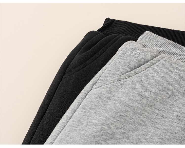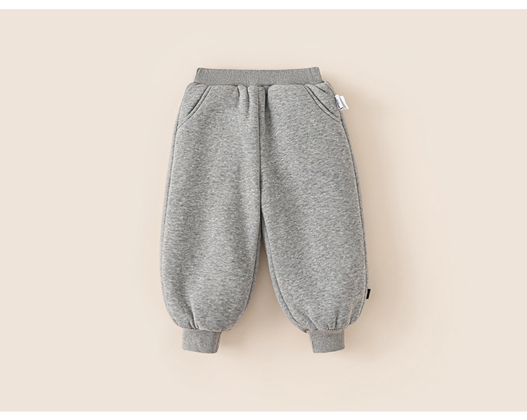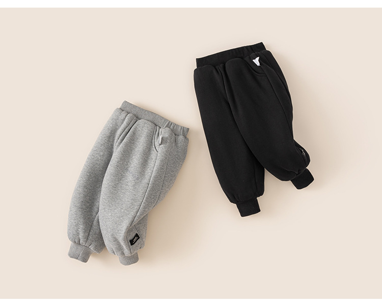 방산 아동복 겨울 두꺼운 바지 소년 단색 기모 캐주얼 바지 소년 간단한 라벨 바지스토어 가기