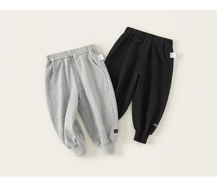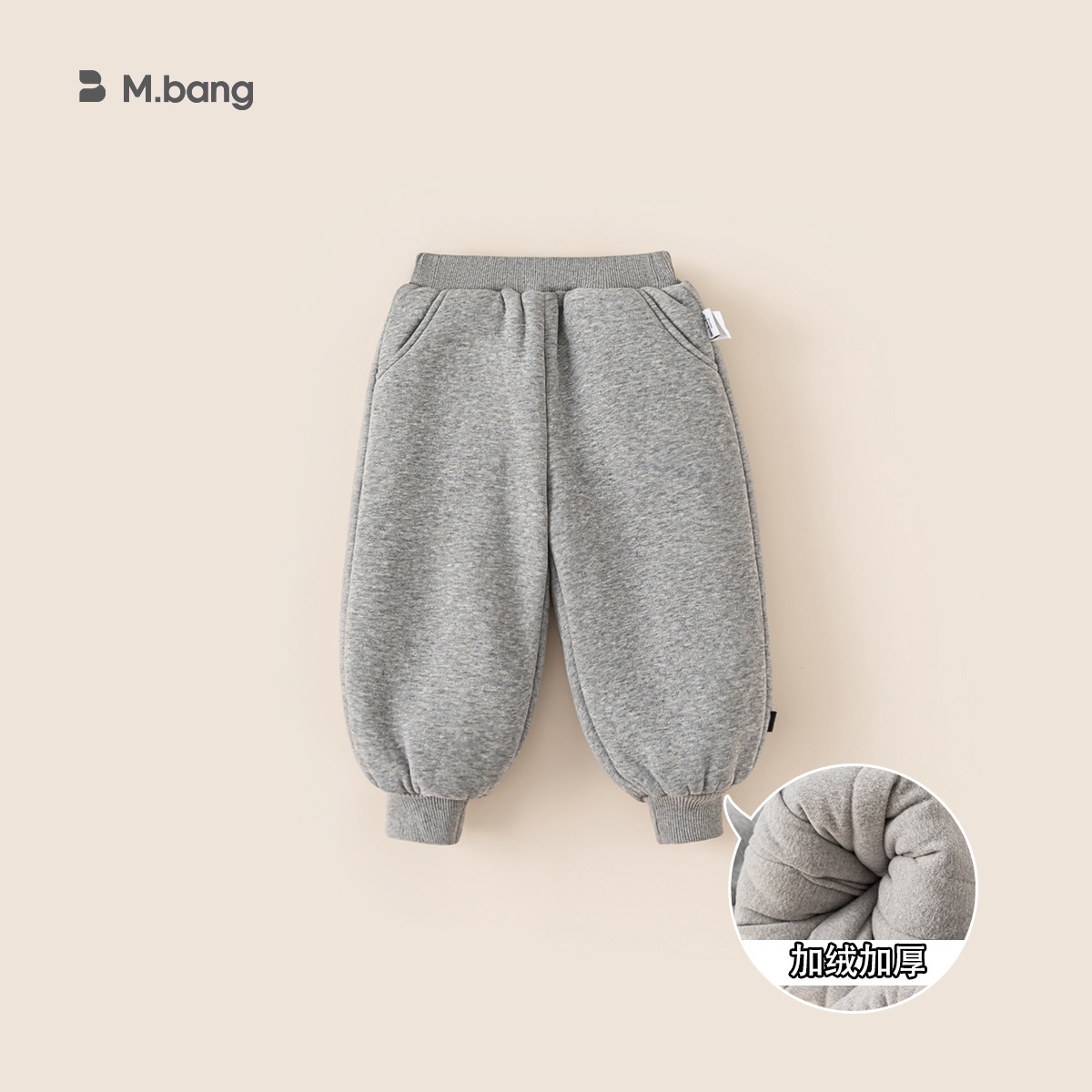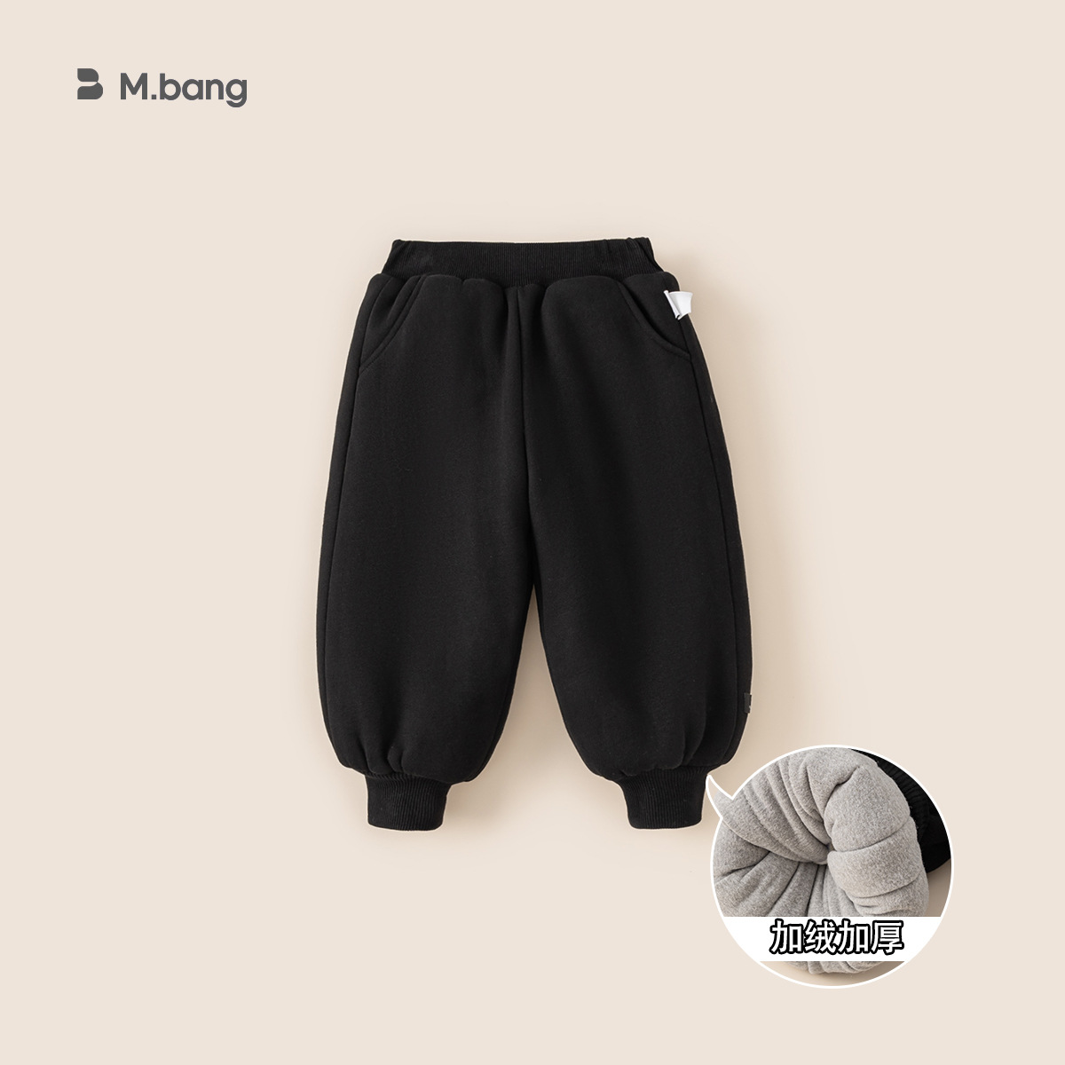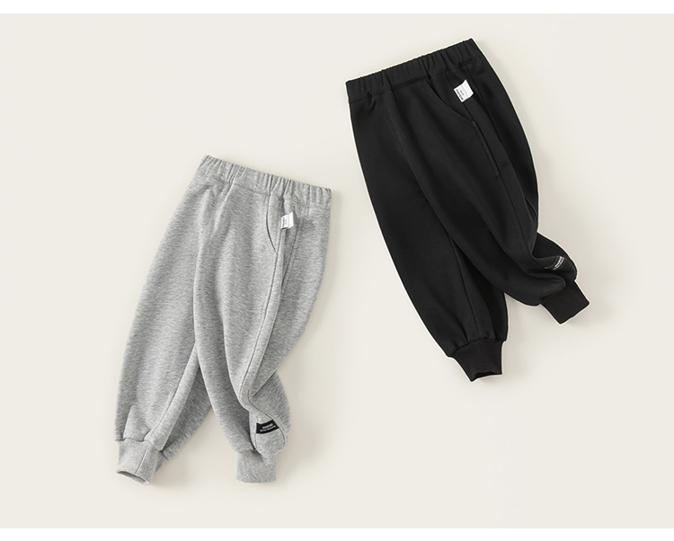 방산 아동복 겨울 두꺼운 바지 소년 단색 기모 캐주얼 바지 소년 간단한 라벨 바지스토어 가기