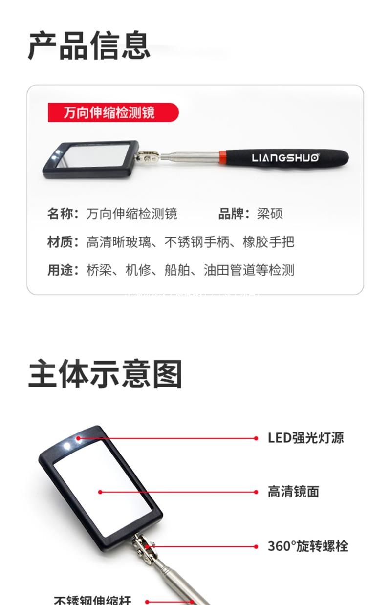 검출기 코너 핸들 거울 안전 거울 망원경 거울 도구 스몰 사이즈 언더 바디 검사 거울 자동차스토어 가기